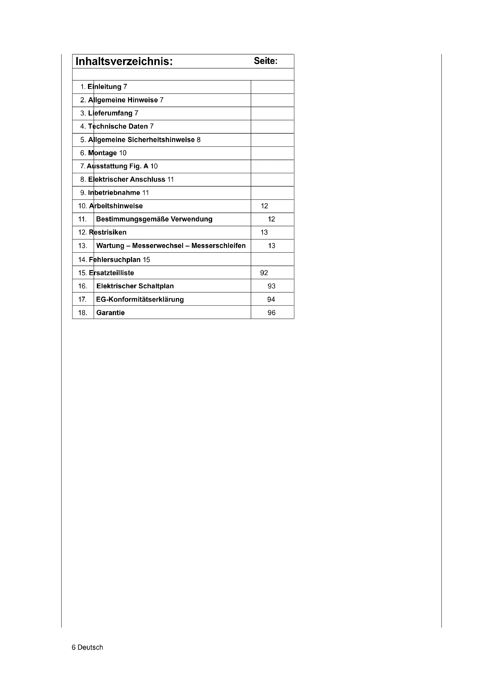 - Betreiben Sie das Gerät nur mit kompletten und korrekt angebrachten Schutzeinrichtungen und än- dern Sie an der Maschine nichts, was die Sicherheit beeinträchtigen könnte.Deutsch 9