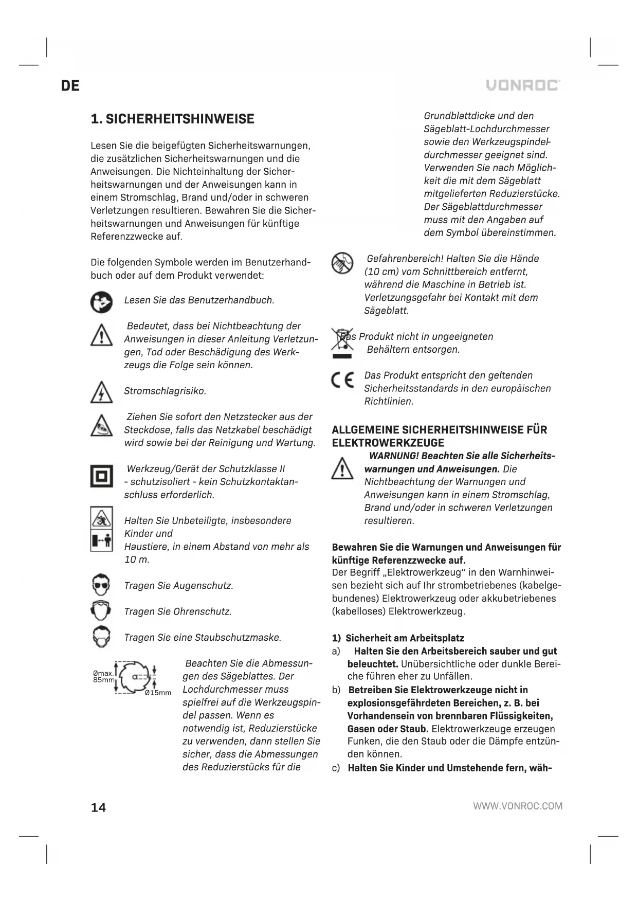 S_CS503AC - Säge Vonroc - Kostenlose Bedienungsanleitung
