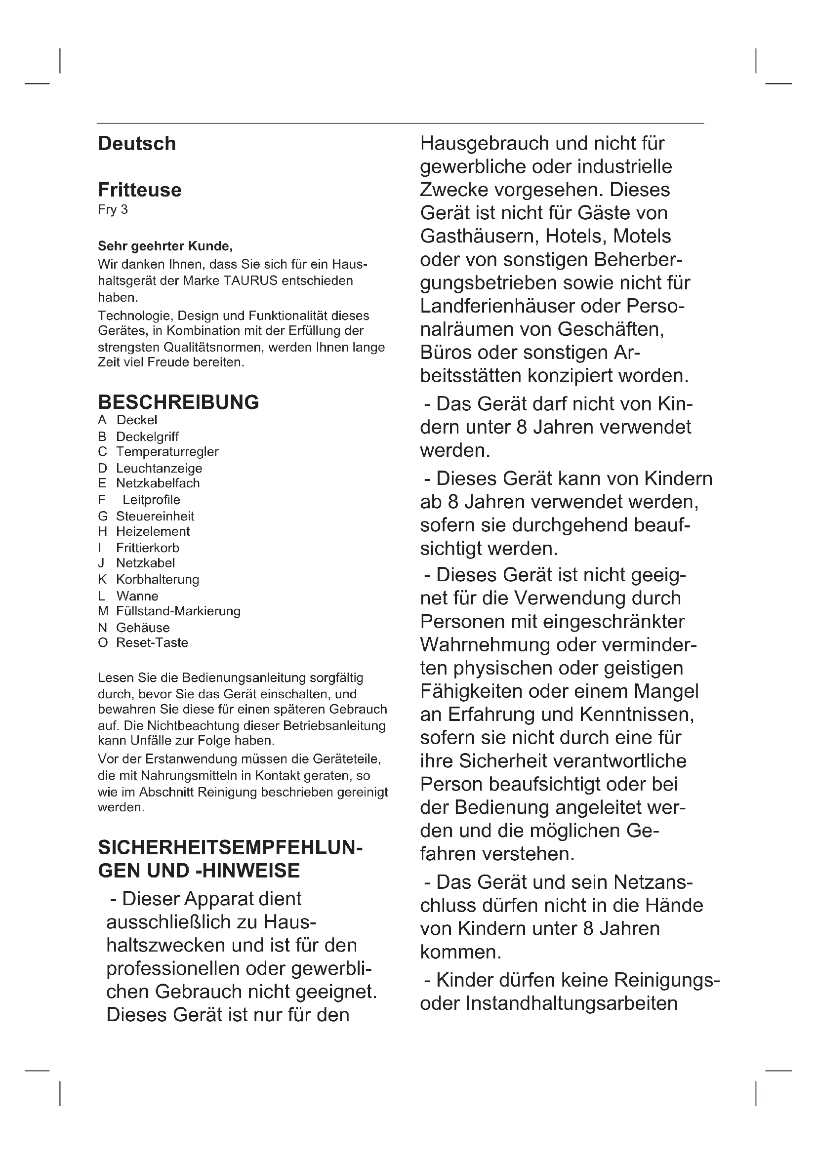 Fry 3 - Fritteuse TAURUS - Kostenlose Bedienungsanleitung