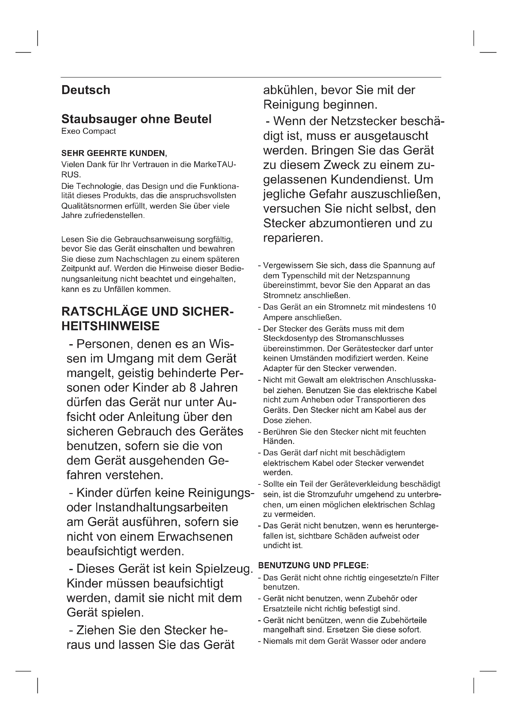 Exeo Compact - Staubsauger TAURUS - Kostenlose Bedienungsanleitung