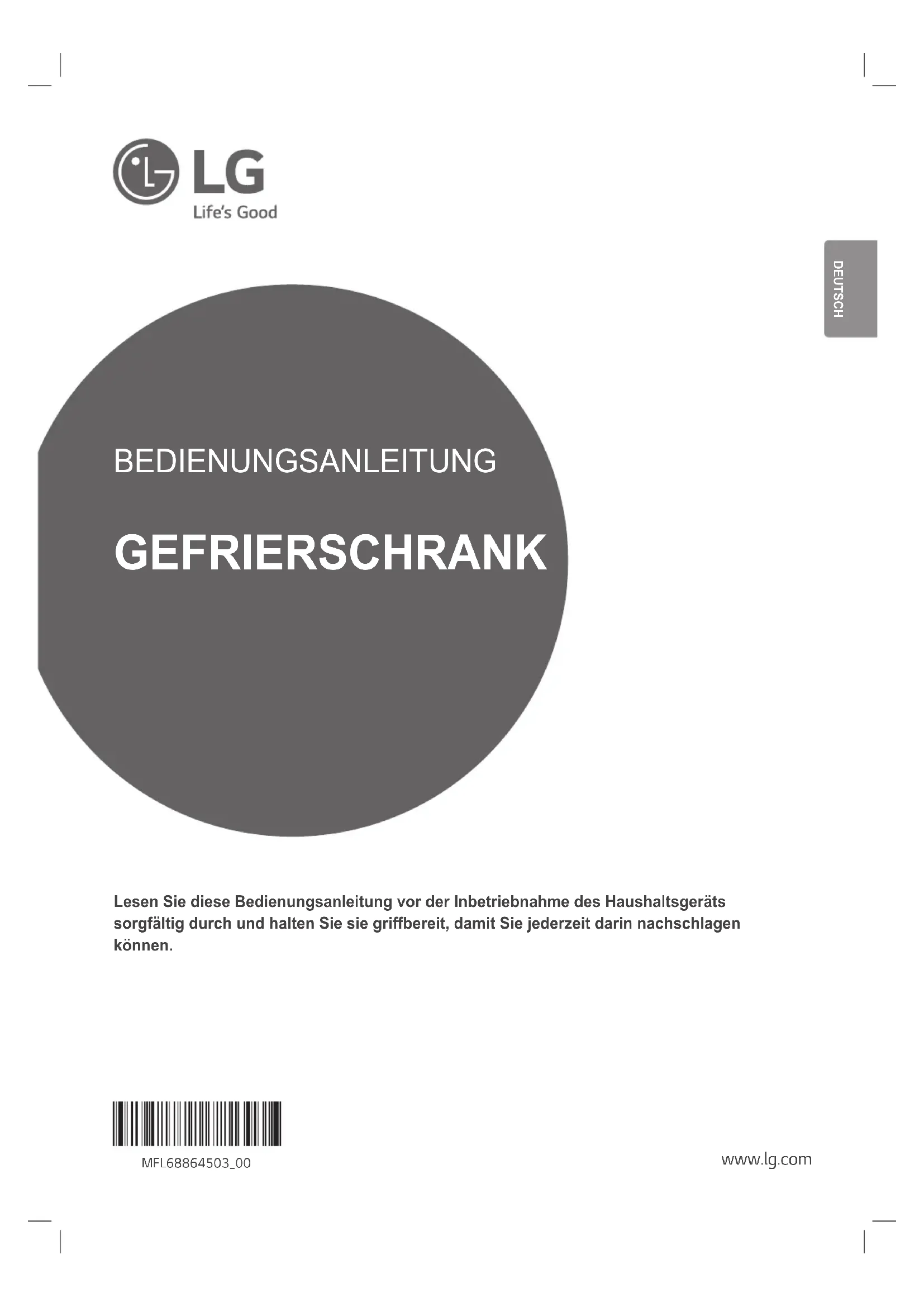 - To eliminate the noise, make sure that the sides and back cannot vibrate against any wall or cabinet.Memowww.lg.com BEDIENUNGSANLEITUNG GEFRIERSCHRANK Lesen Sie diese Bedienungsanleitung vor der Inbetriebnahme des Haushaltsgeräts sorgfältig durch und halten Sie sie griffbereit, damit Sie jederzeit darin nachschlagen können. MFL68864503_00 DEUTSCHinhaLt Diese Bedienungsanleitung wurde für eine Produktgruppe erstellt. Sie kann daher Abbildungen oder Inhalte enthalten, die sich von Ihrem Modell unterscheiden. Diese Bedienungsanleitung wird vom Hersteller überarbeitet. sicherheitsanweisunGen p. 3