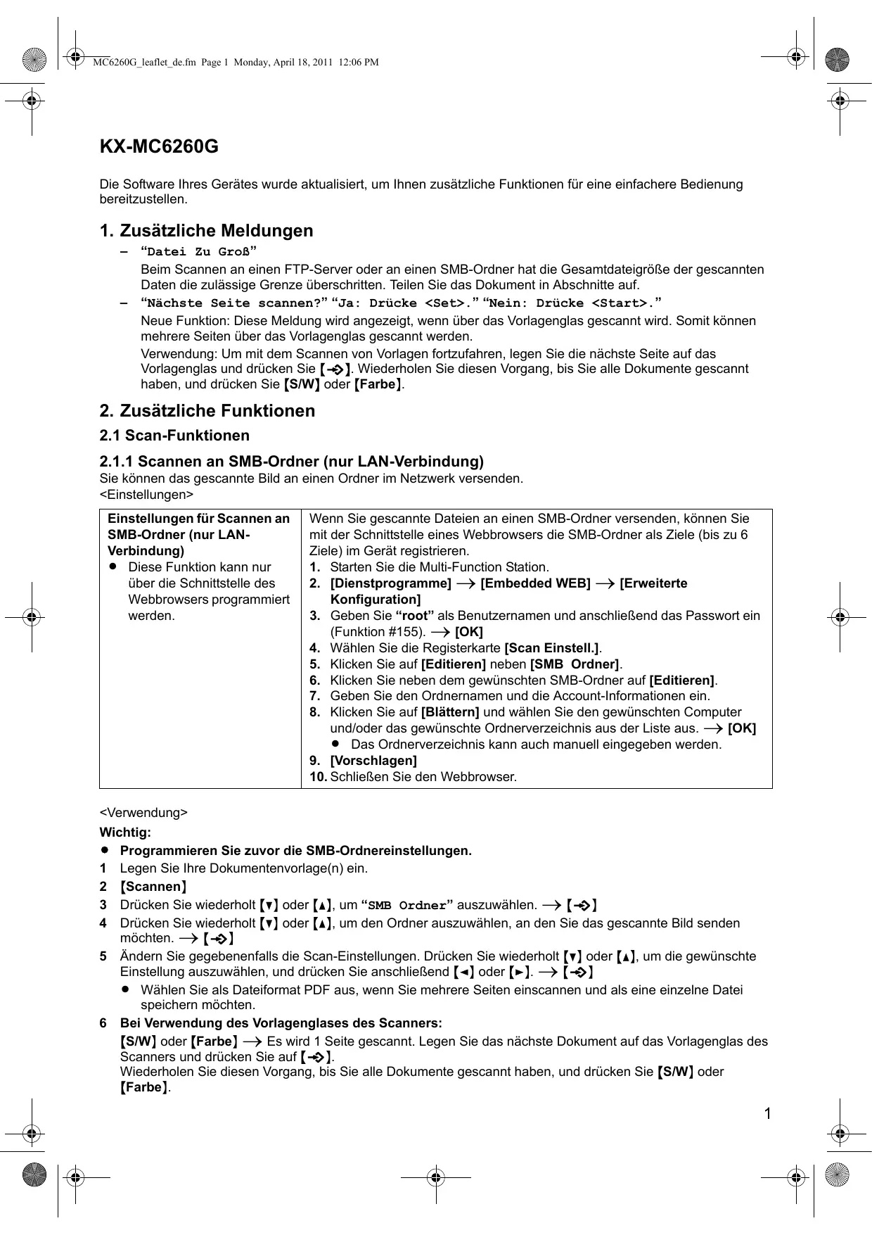 KXMC6260G - Scanner PANASONIC - Kostenlose Bedienungsanleitung