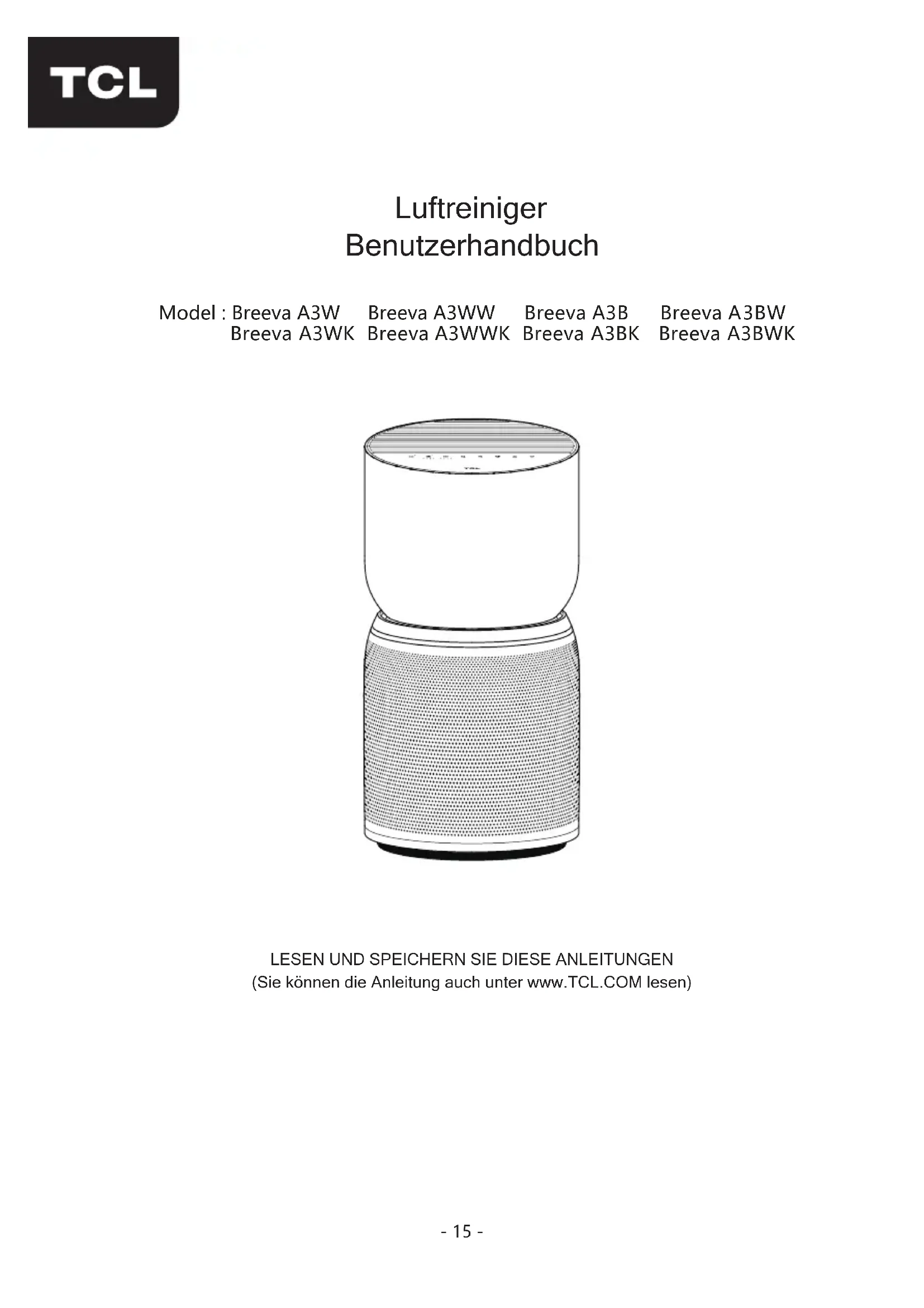 Breeva A3WWK - Luftreiniger TCL - Kostenlose Bedienungsanleitung