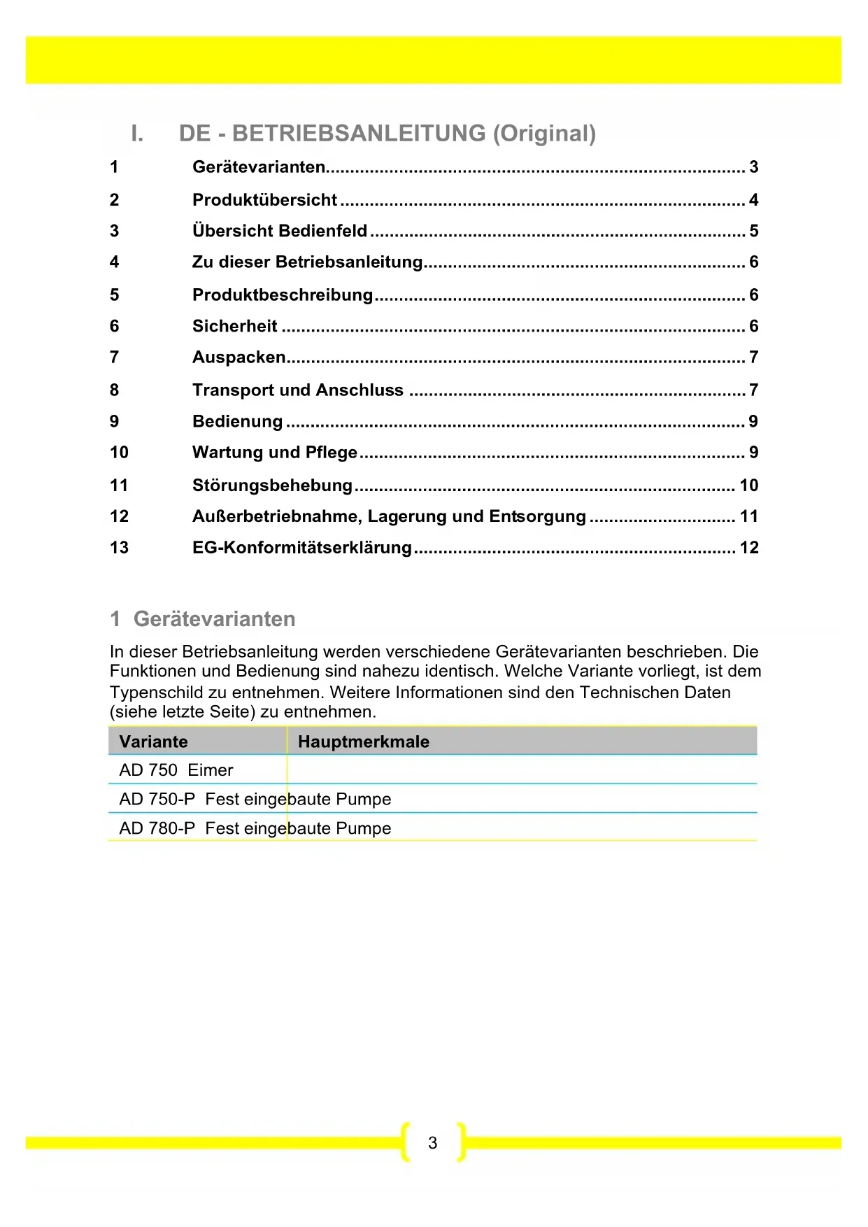 - 1 Gerätevarianten p. 3