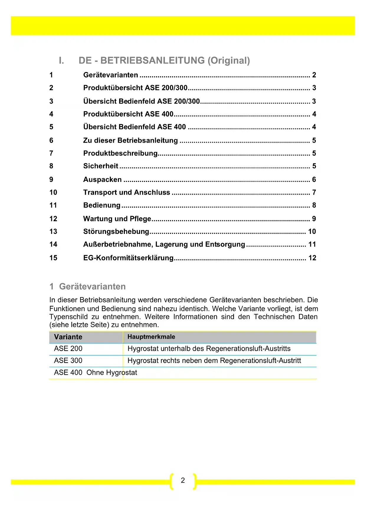 Den Adsorptionstrockner nicht dem Hausmüll zufüh- ren, sondern entspre- chend den gesetzlichen Bestimmungen entsorgen.12 15 EG-Konformitätserklärung EG-Konformitätserklärung im Sinne der Maschinenrichtlinie 2006/42/EG Anhang II 1.A Hersteller: Dantherm GmbH Oststraße 148 22844 Norderstedt Produkt: Adsorptionstrockner ASE Produkt-Nr: ASE 200 / ASE 300 / ASE 400 Funktionsbeschreibung: Die Adsorptionstrockner sind zur Entfeuchtung von Luft bei Atmosphärendruck in Innenräumen vorgesehen. Es wird ausdrücklich erklärt, dass das Produkt den einschlägigen Bestimmun- gen der folgenden Richtlinien entspricht: