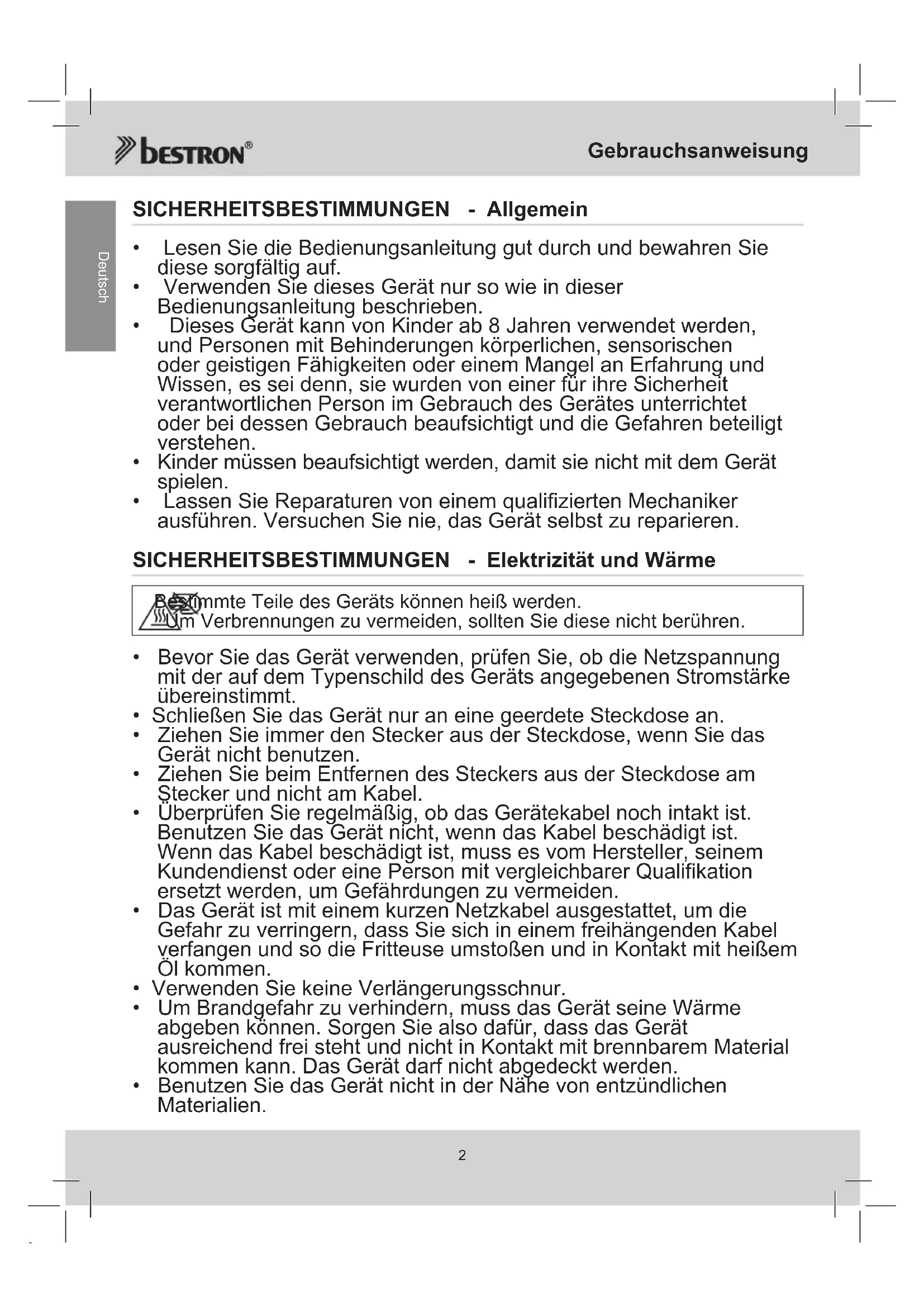 KUNDENDIENST Sollte unerwartet eine Störung auftreten dann können Sie sich mit dem BESTRON-Kundendienst in Verbindung setzen: www.bestron.com/service