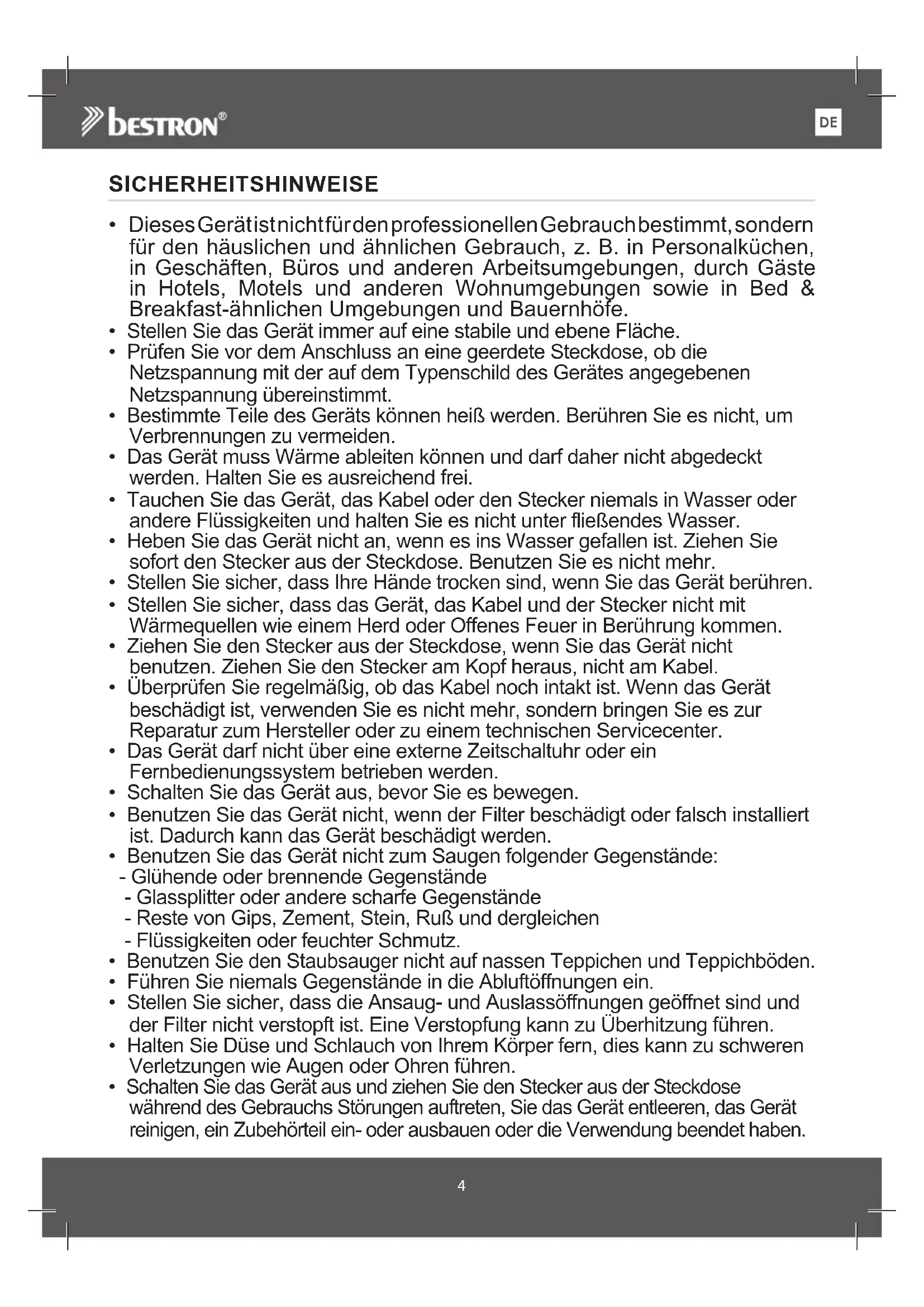 - Benutzen Sie den Staubsauger nicht auf nassen Teppichen und Teppichböden.