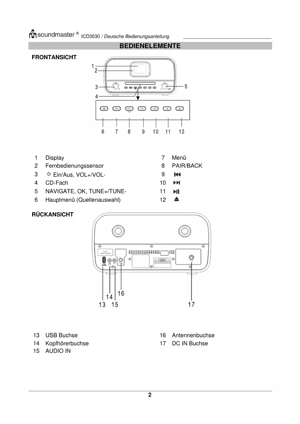 BEDIENUNGSANLEITUNG ICD3030 Soundmaster