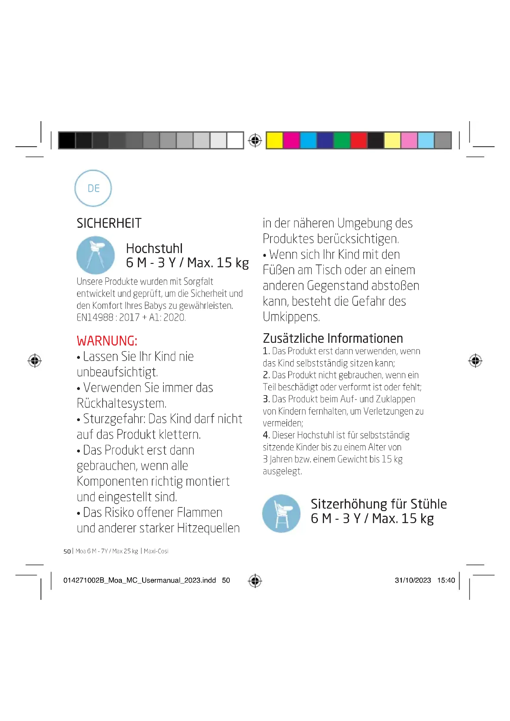 Laden Sie die Anleitung für Ihr Hochstuhl kostenlos im PDF-Format! Finden Sie Ihr Handbuch Moa - MAXI-COSI und nehmen Sie Ihr elektronisches Gerät wieder in die Hand. Auf dieser Seite sind alle Dokumente veröffentlicht, die für die Verwendung Ihres Geräts notwendig sind. Moa von der Marke MAXI-COSI.