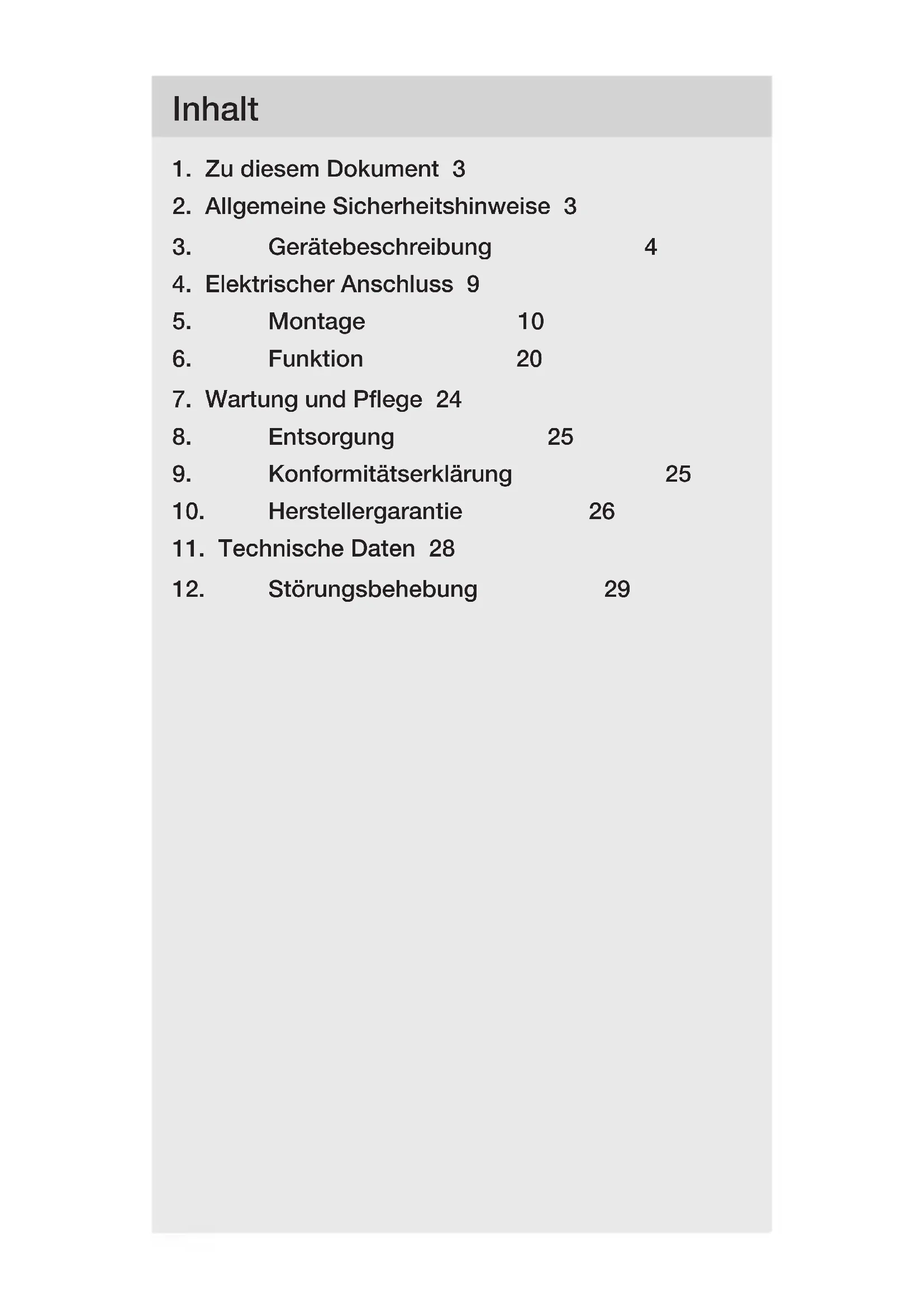 - Gerät mit einem leicht angefeuchteten Tuch ohne Reini- gungsmittel reinigen. Wichtig: Das Betriebsgerät ist nicht austauschbar.– 25 – Inhalt