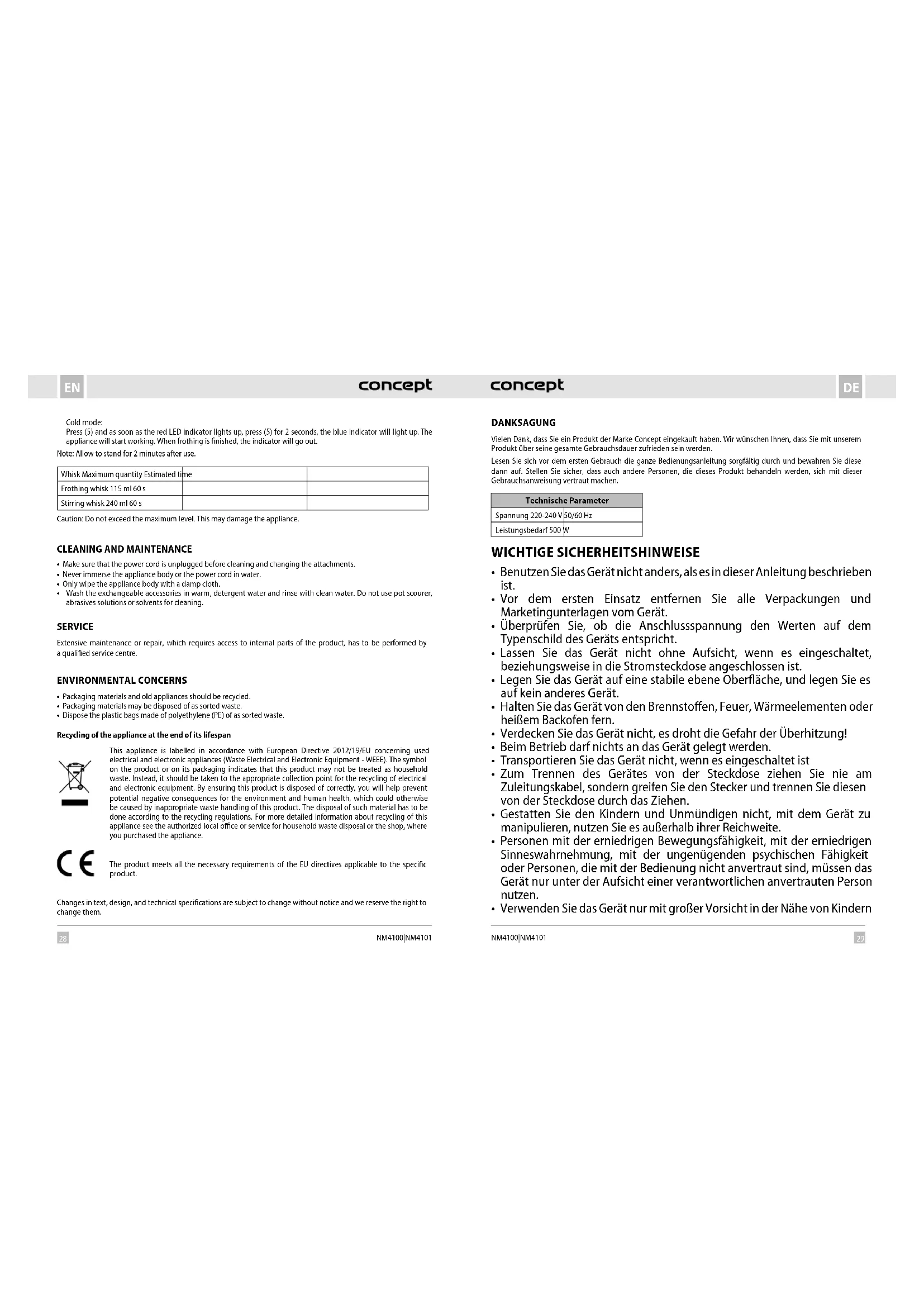 NM4101 - Milchaufschäumer Concept - Kostenlose Bedienungsanleitung