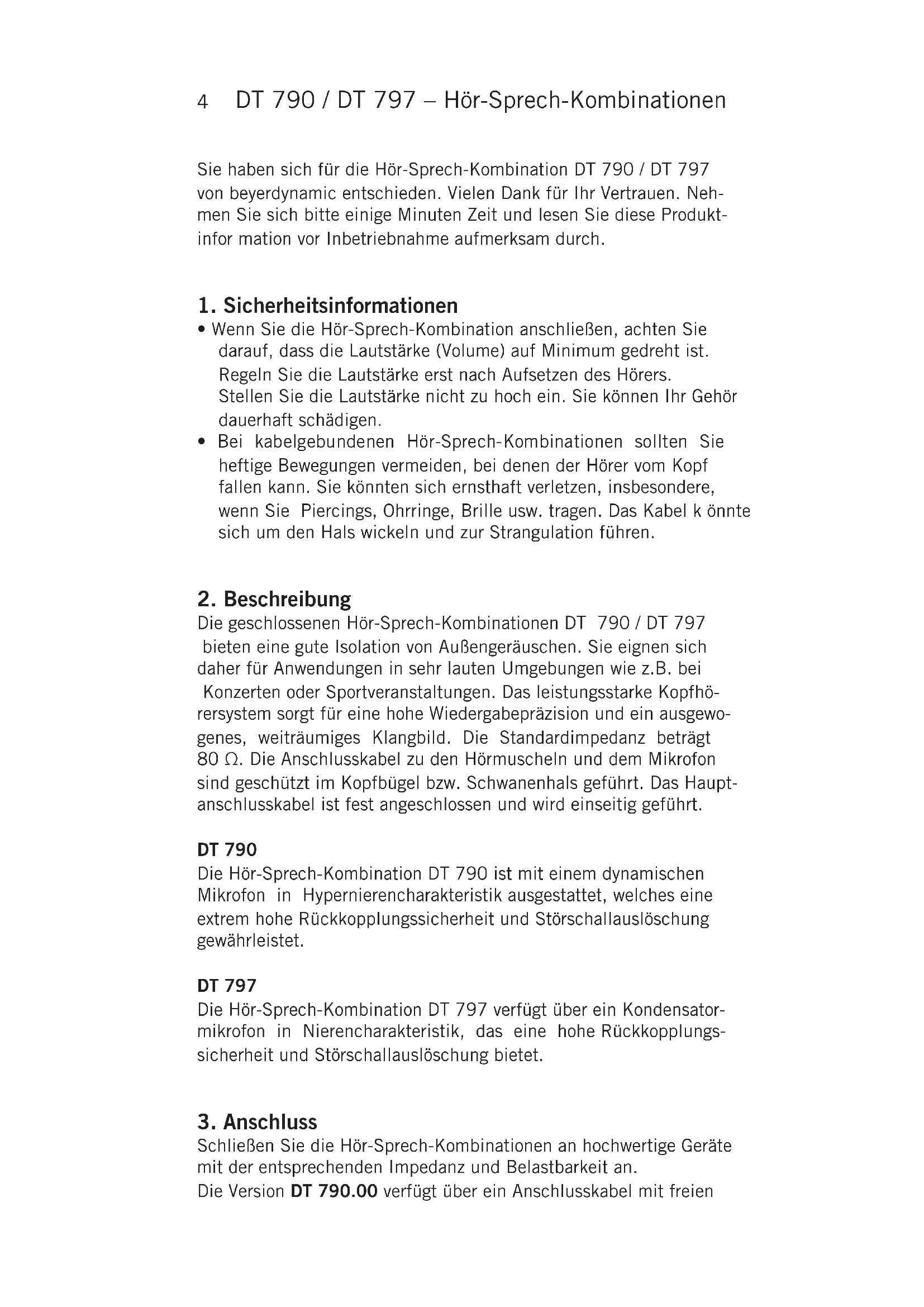 Sie haben sich für die Hör-Sprech-Kombination DT 790 / DT 797 von beyerdynamic entschieden. Vielen Dank für Ihr Vertrauen. Neh- men Sie sich bitte einige Minuten Zeit und lesen Sie diese Produkt- infor mation vor Inbetriebnahme aufmerksam durch.