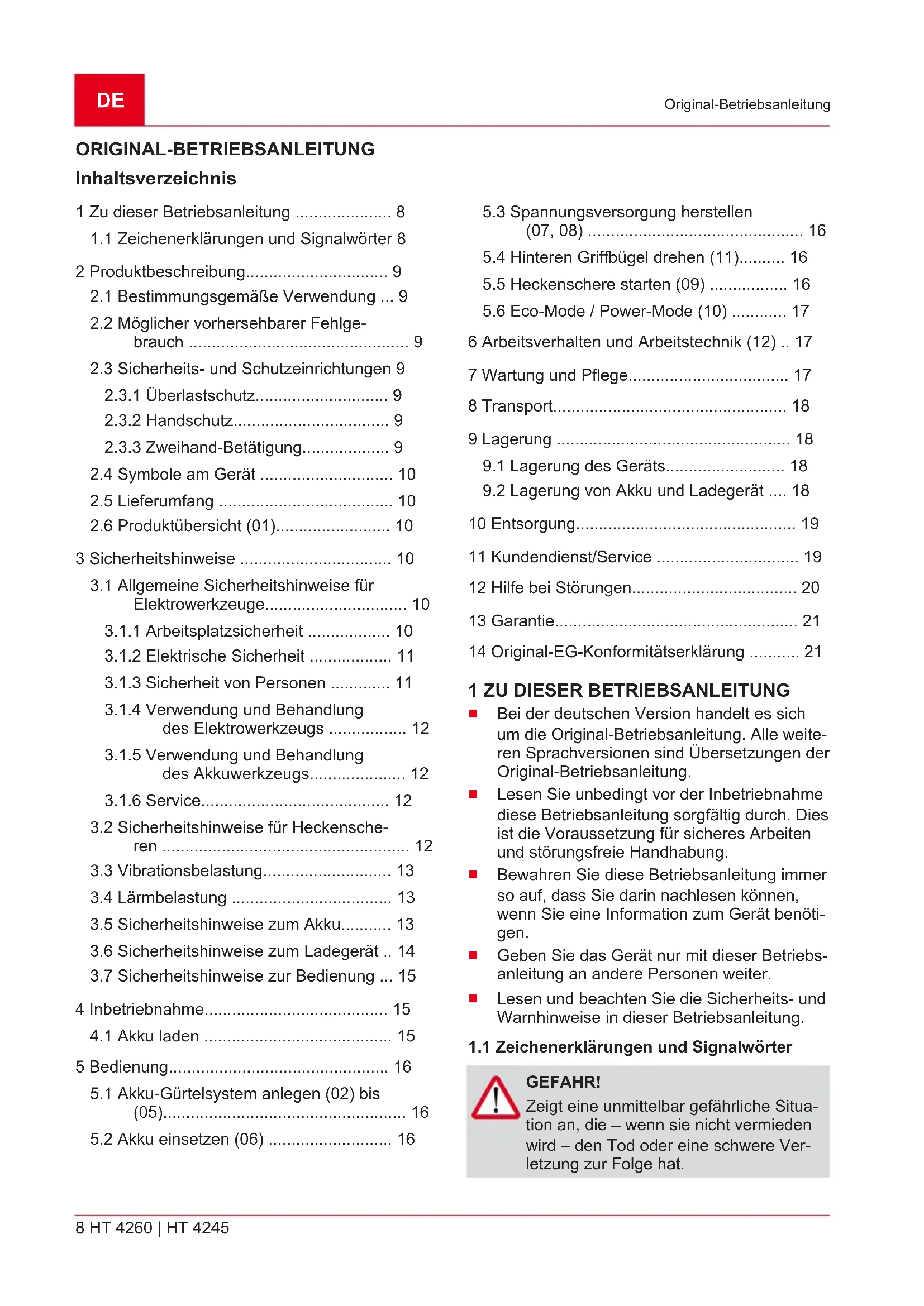0 °C – +40°C442203_b 7DE 8 HT 4260 | HT 4245 Original-Betriebsanleitung ORIGINAL-BETRIEBSANLEITUNG Inhaltsverzeichnis 1 Zu dieser Betriebsanleitung ..................... 8
