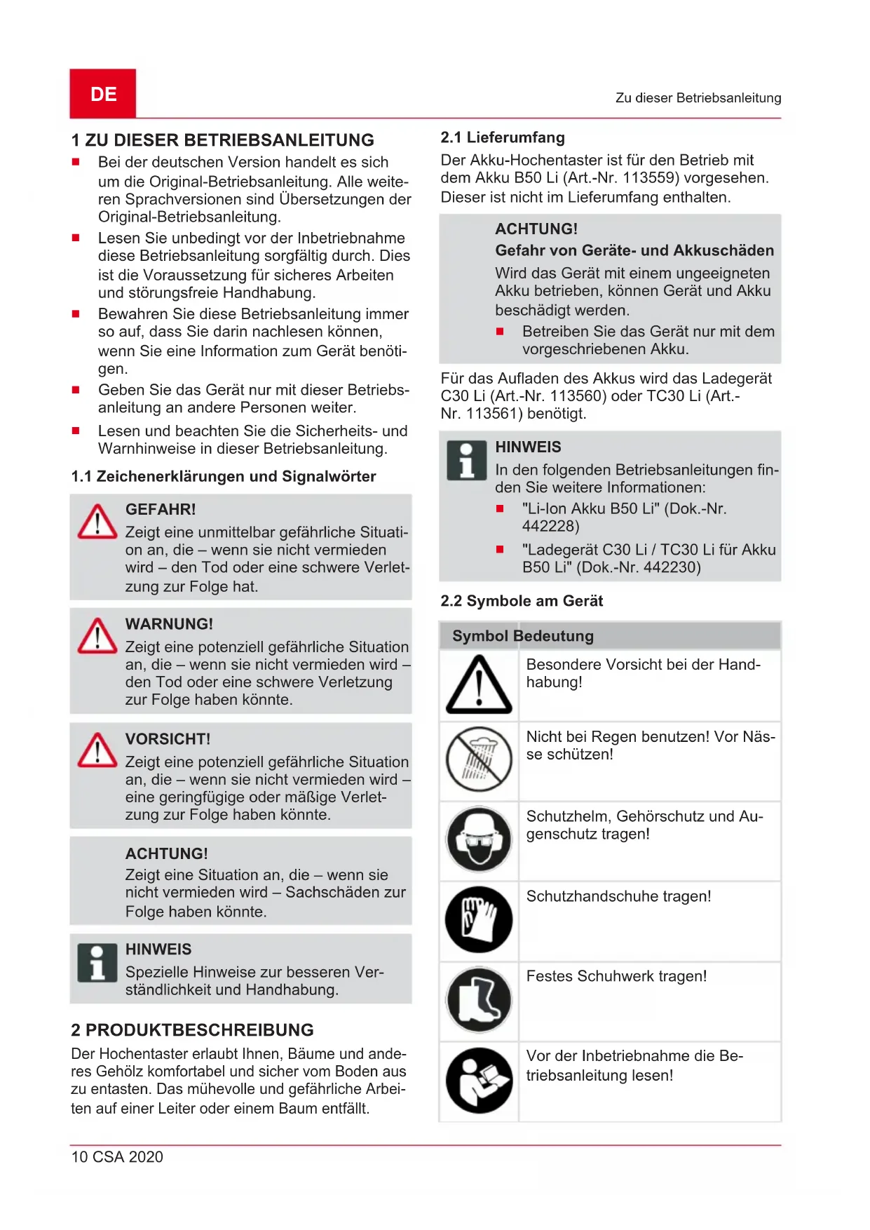 BETRIEBSANLEITUNG AKKU-HOCHENTASTER CSA 2020 442216_a 12 | 2017
