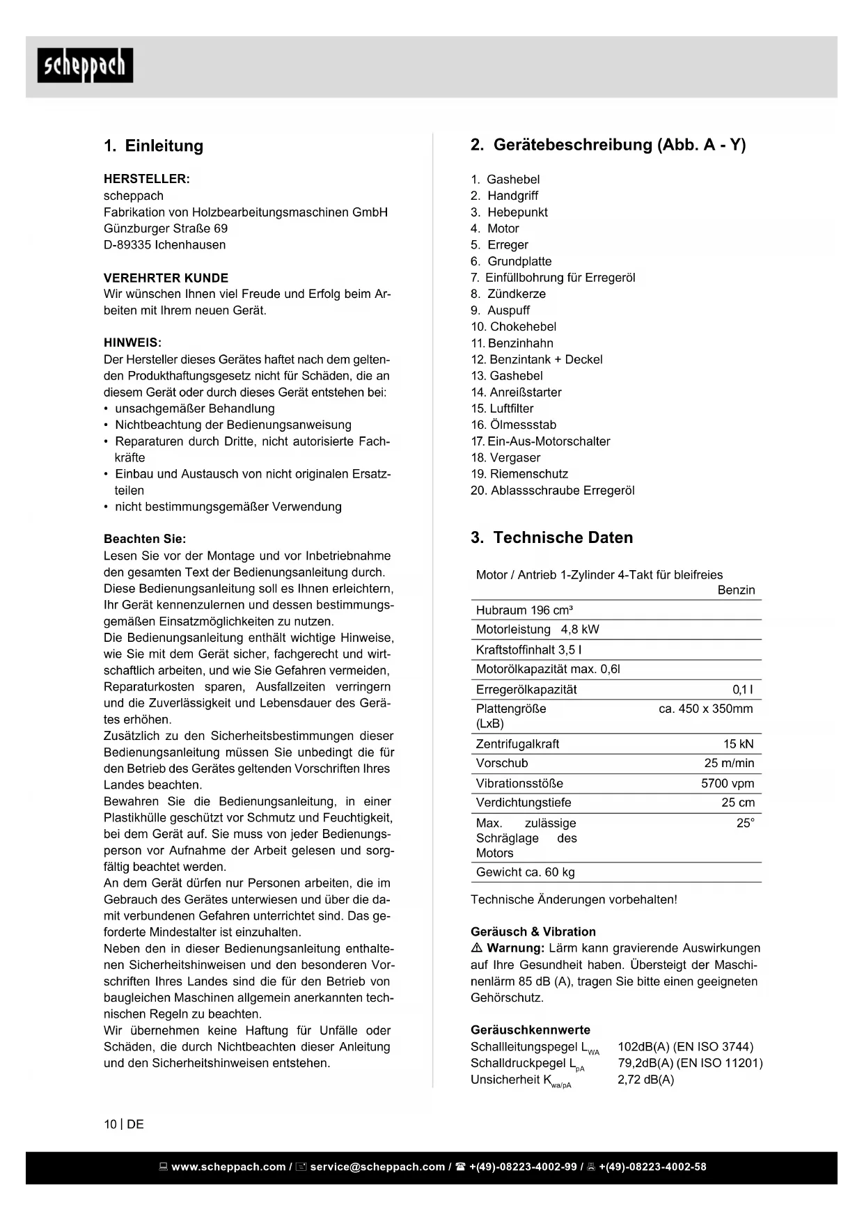 HP1200S - Rüttelplatte SCHEPPACH - Kostenlose Bedienungsanleitung