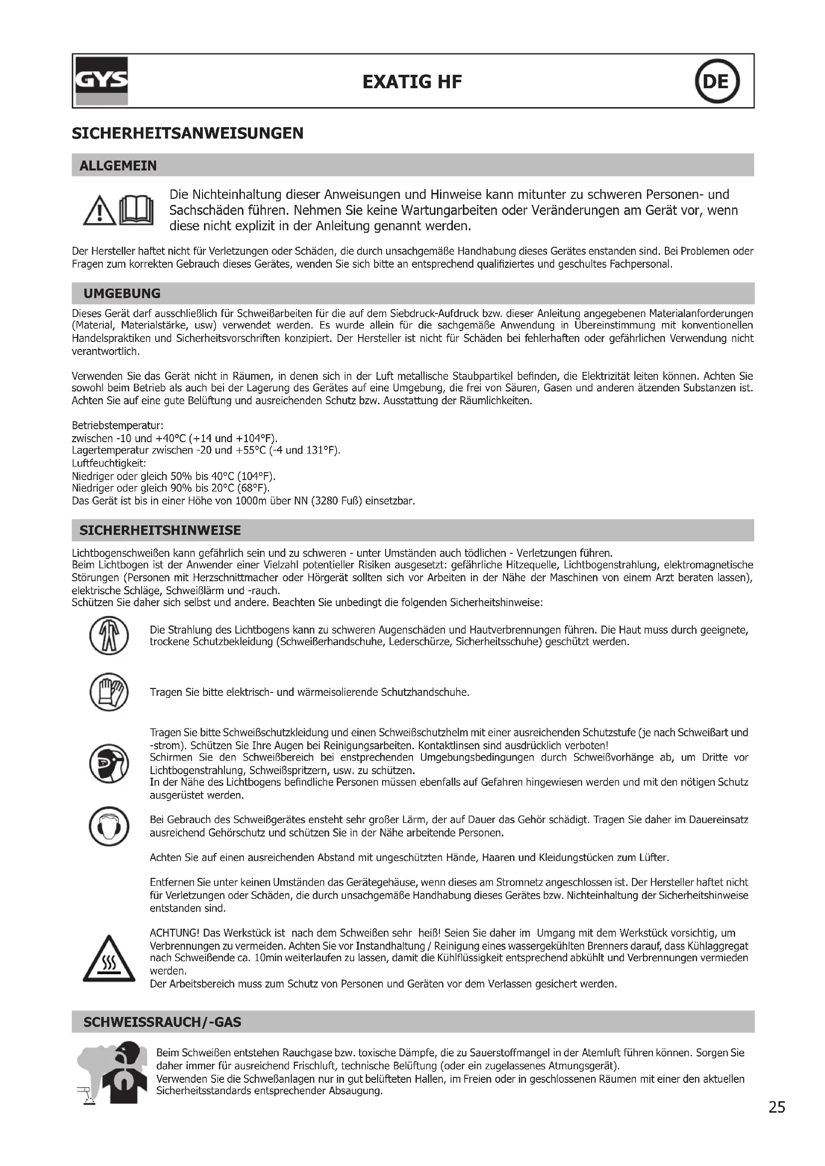 BEDIENUNGSANLEITUNG Exatig HF GYS