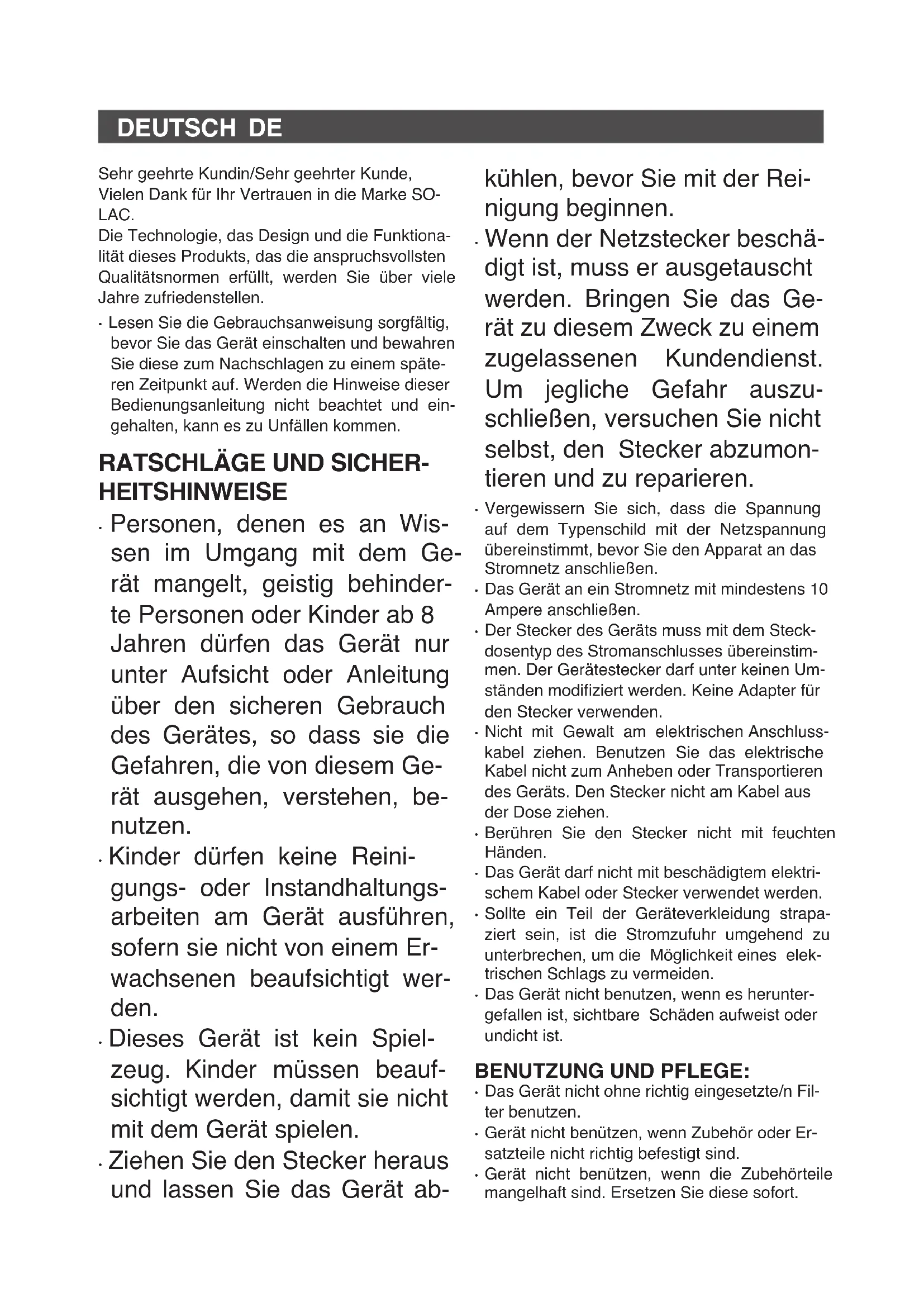 - Dieser Apparat dient ausschließlich für Haus- haltszwecke und ist für professionellen oder gewerblichen Gebrauch nicht geeignet.