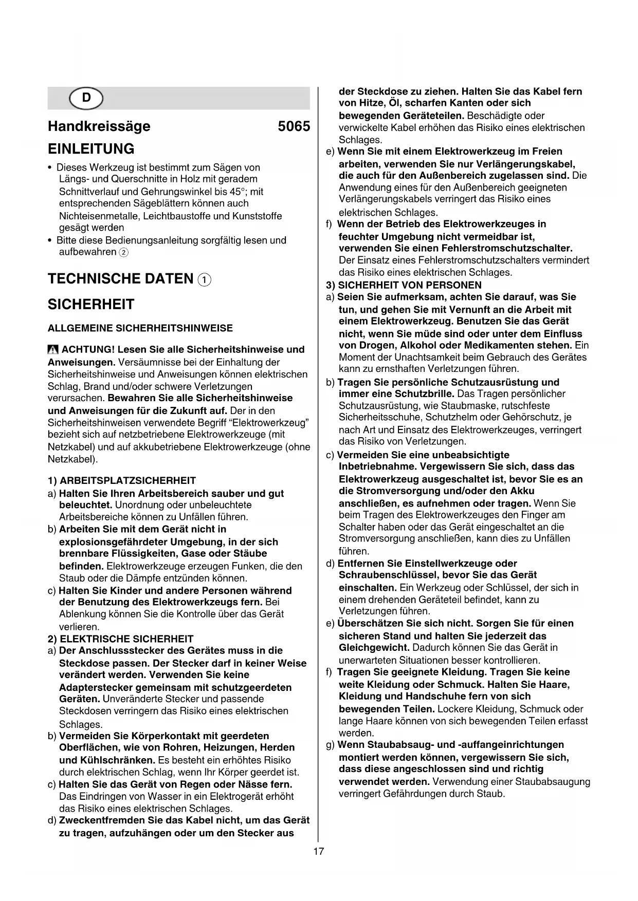 Handkreissäge 5065 EINLEITUNG