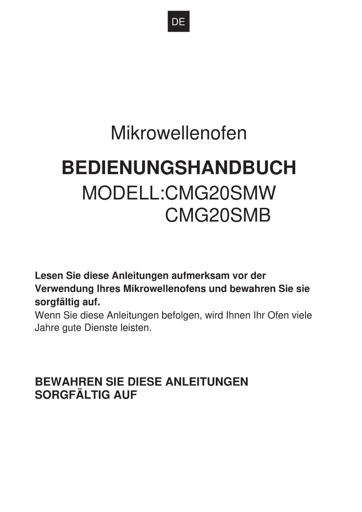 Lesen Sie diese Anleitungen aufmerksam vor der Verwendung Ihres Mikrowellenofens und bewahren Sie sie sorgfältig auf.