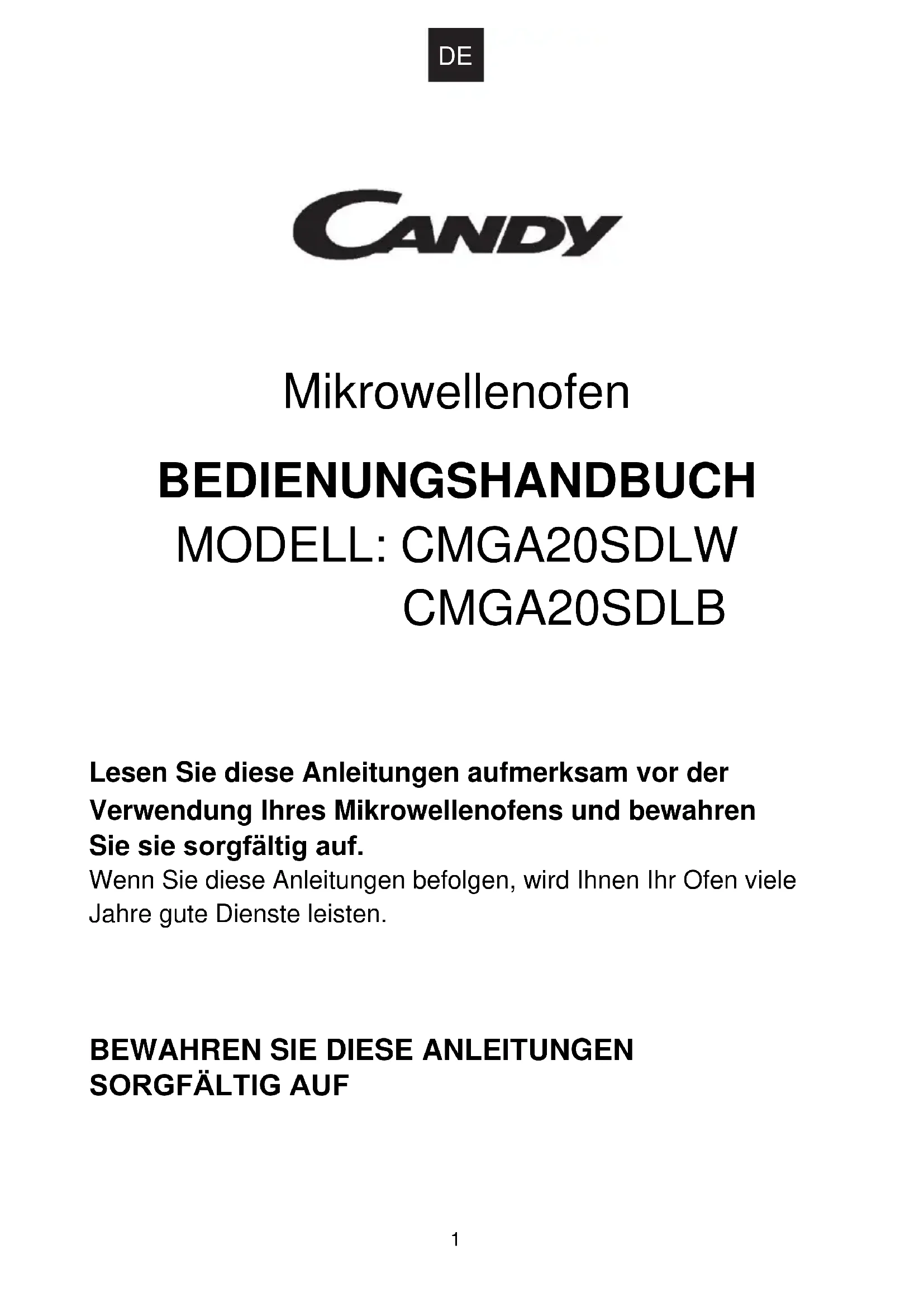 Finden Sie kostenlos die Bedienungsanleitung des Geräts CMGA20SDLB CANDY als PDF.