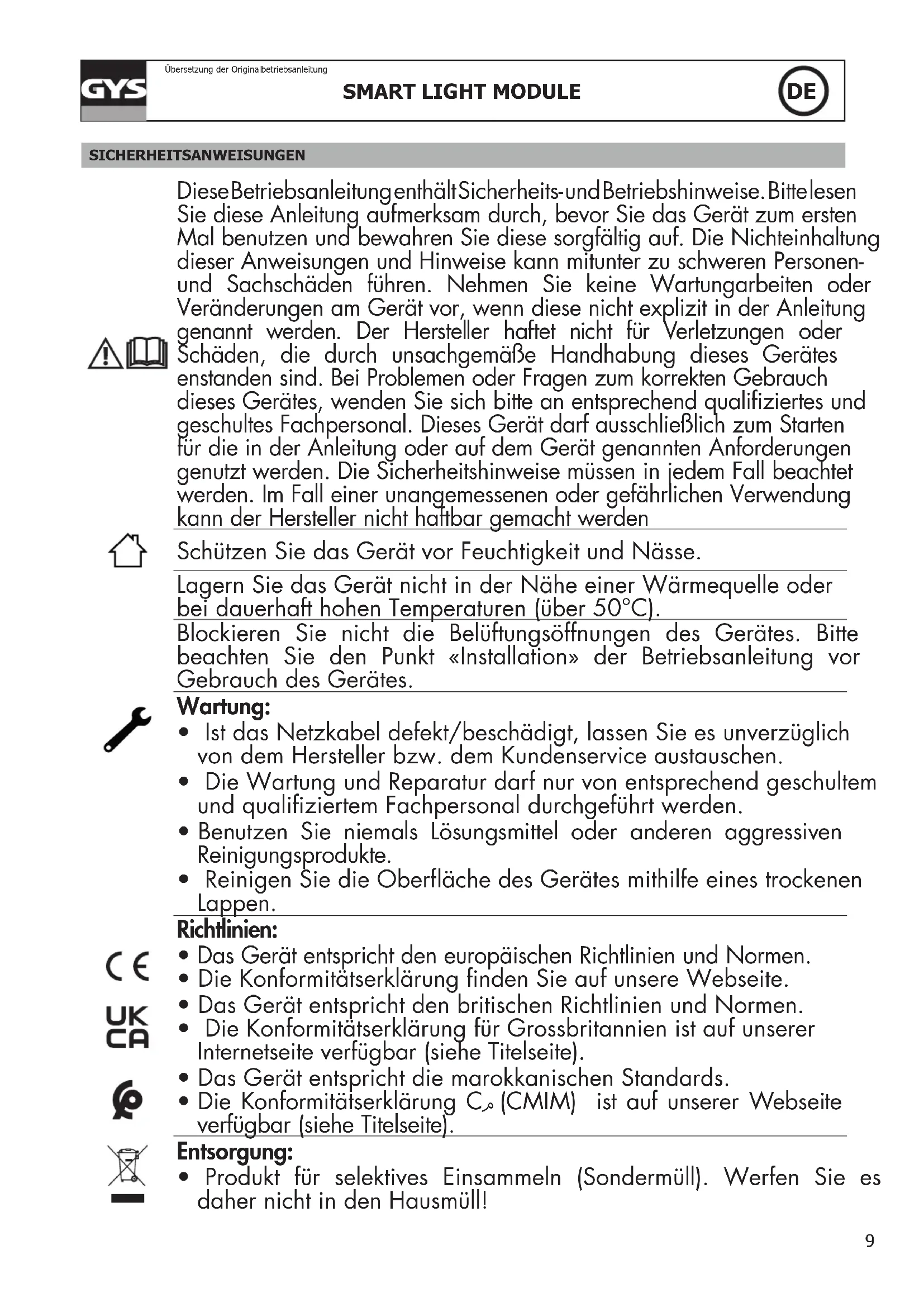 Smart Light Module - Beleuchtung GYS - Kostenlose Bedienungsanleitung