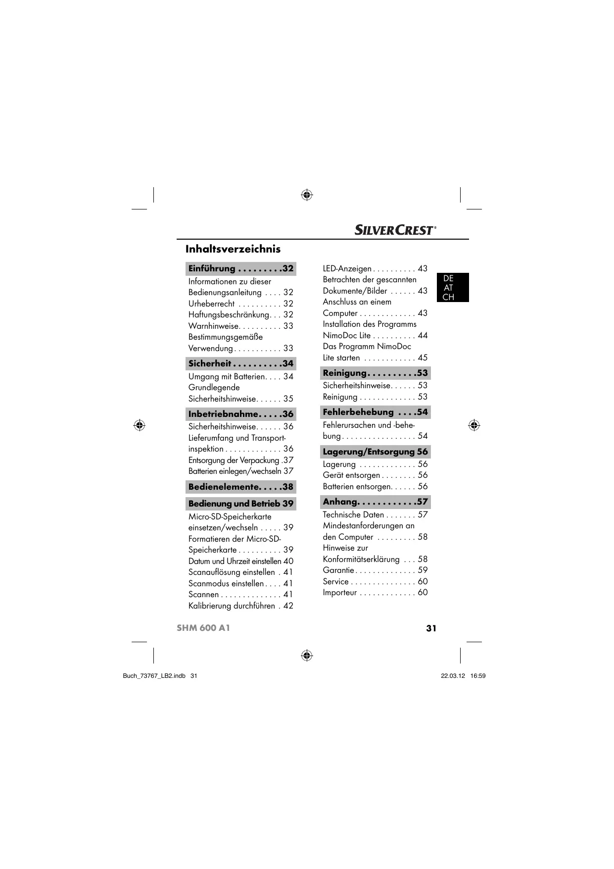 - Kalibrierung durchführen . 42 SHM 600 A1 Buch_73767_LB2.indb 31 LED-Anzeigen p. 43