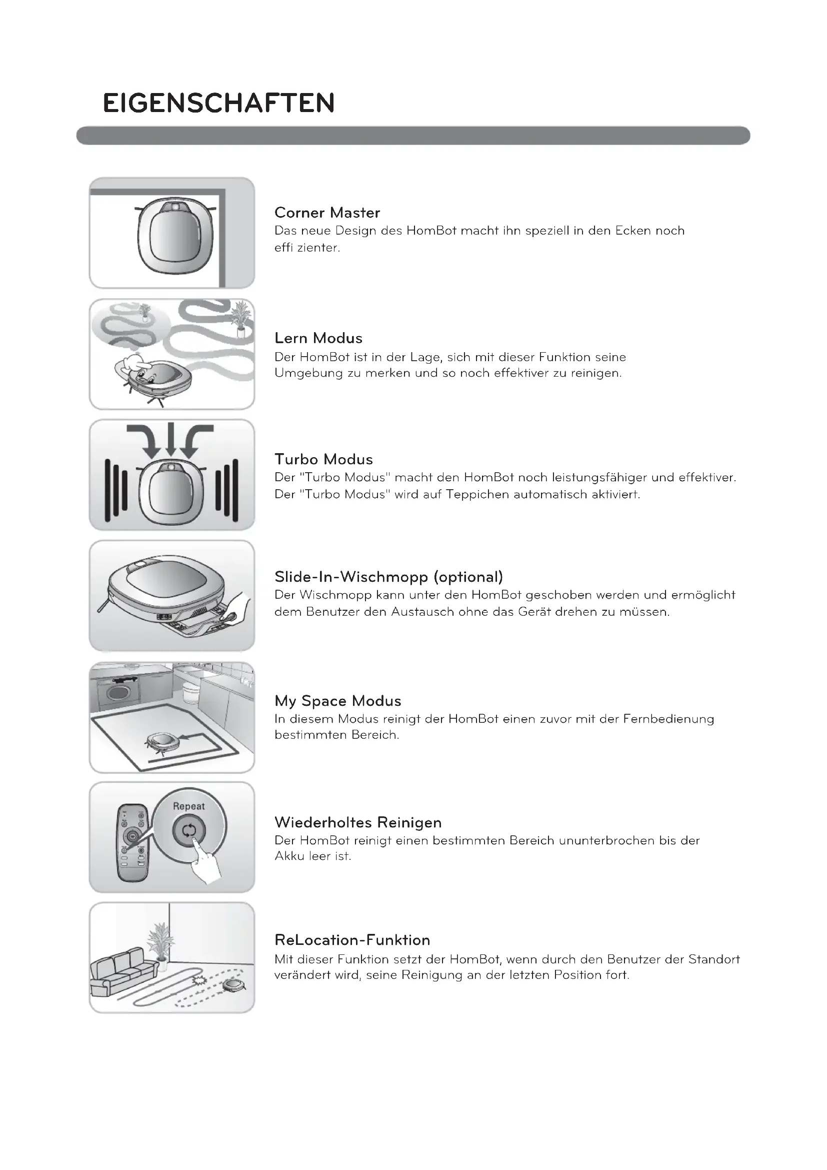 - Um die einwandfrei Funktion des Geräts zu gewährleisten, verwenden Sie nur den mit dem HomBot mitgelieferten Mikrofaser-Mopp.