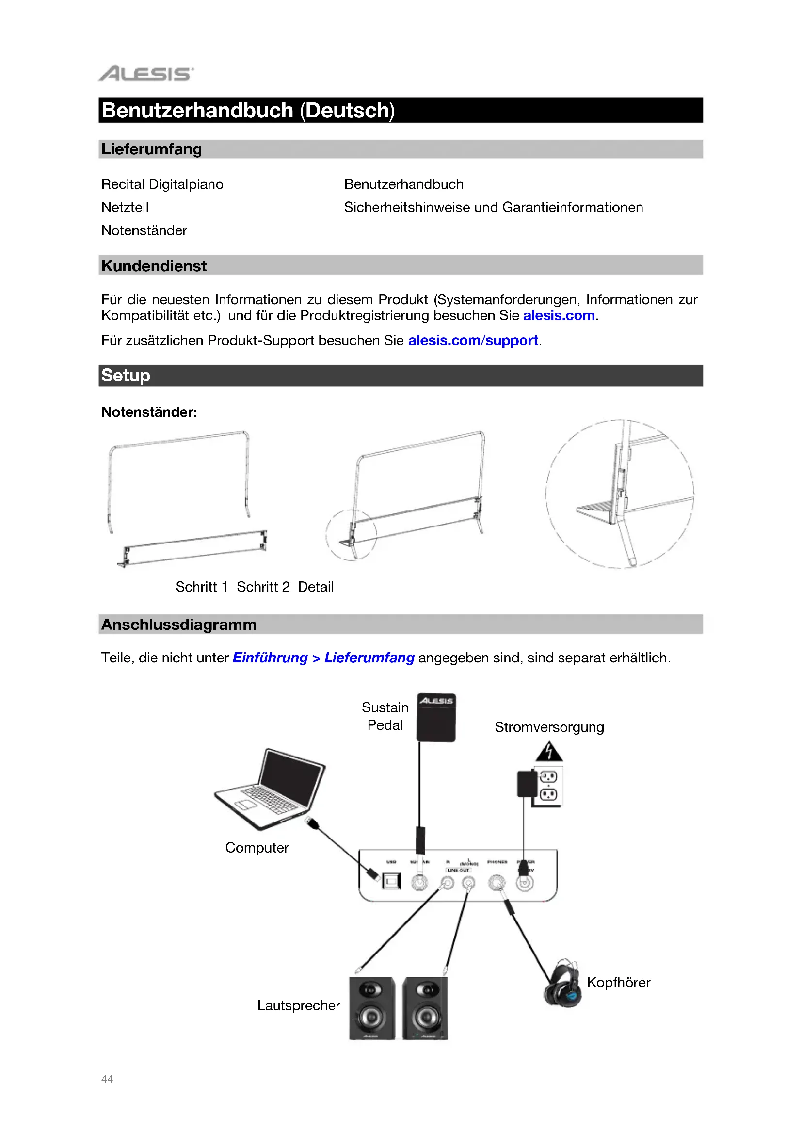BEDIENUNGSANLEITUNG Recital ALESIS