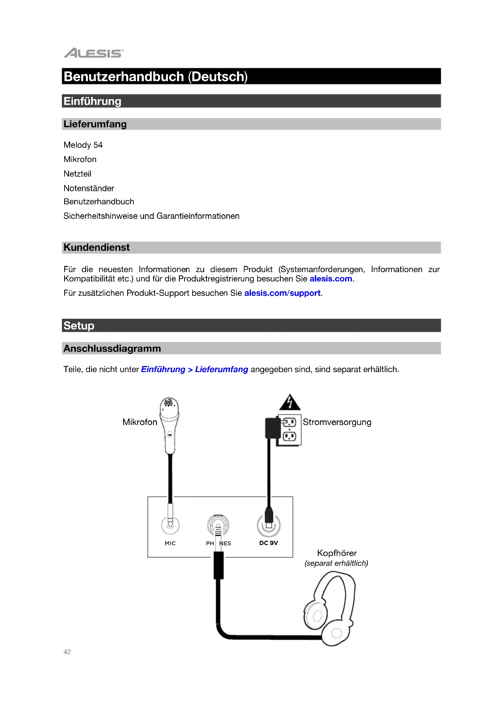 Für zusätzlichen Produkt-Support besuchen Sie alesis.com/support.