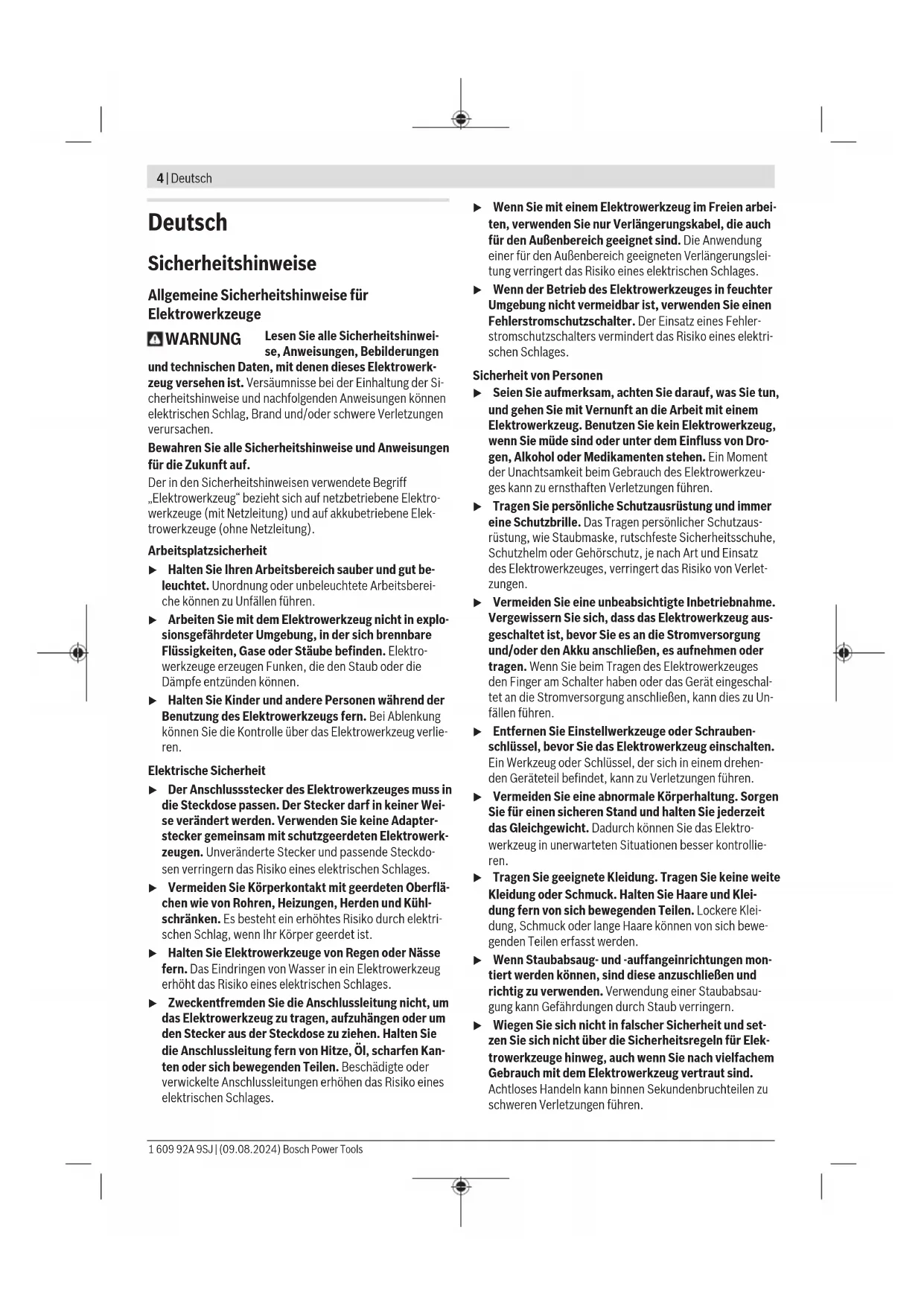 Allgemeine Sicherheitseinweise für Elektrowerkzeuge