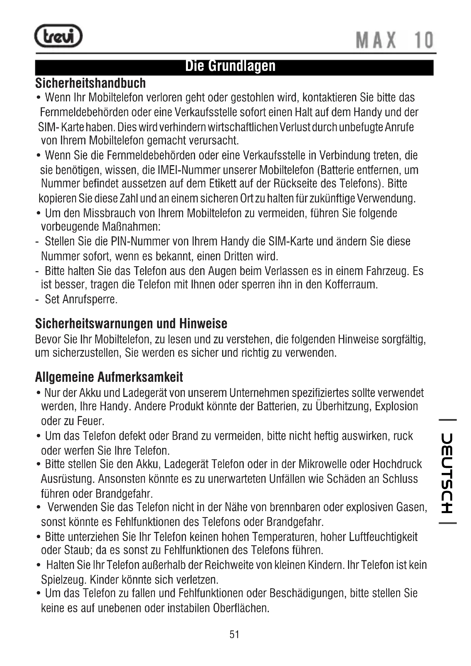 MAX 10 - Telefon Trevi - Kostenlose Bedienungsanleitung