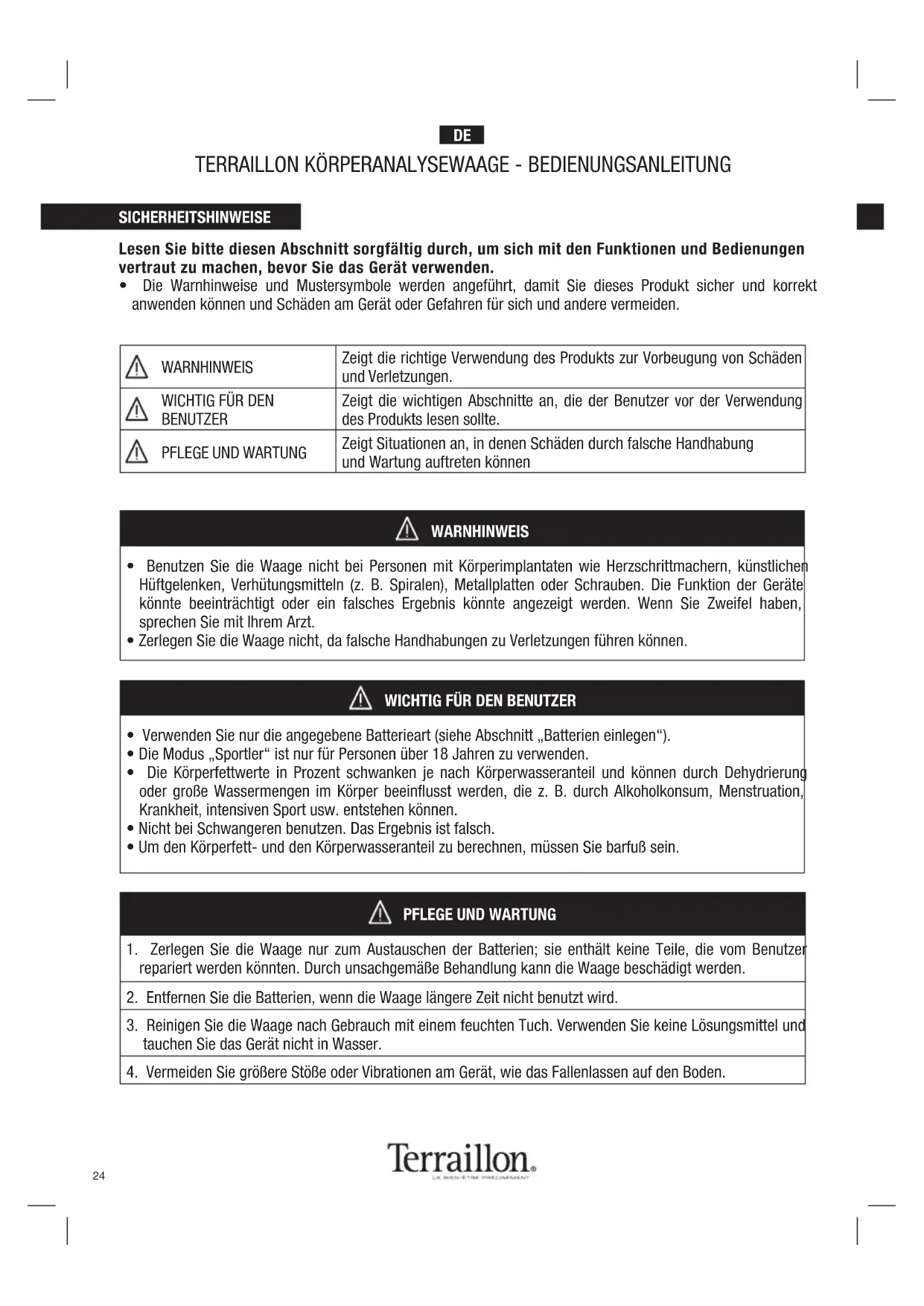 TERRAILLON KÖRPERANALYSEWAAGE - BEDIENUNGSANLEITUNG