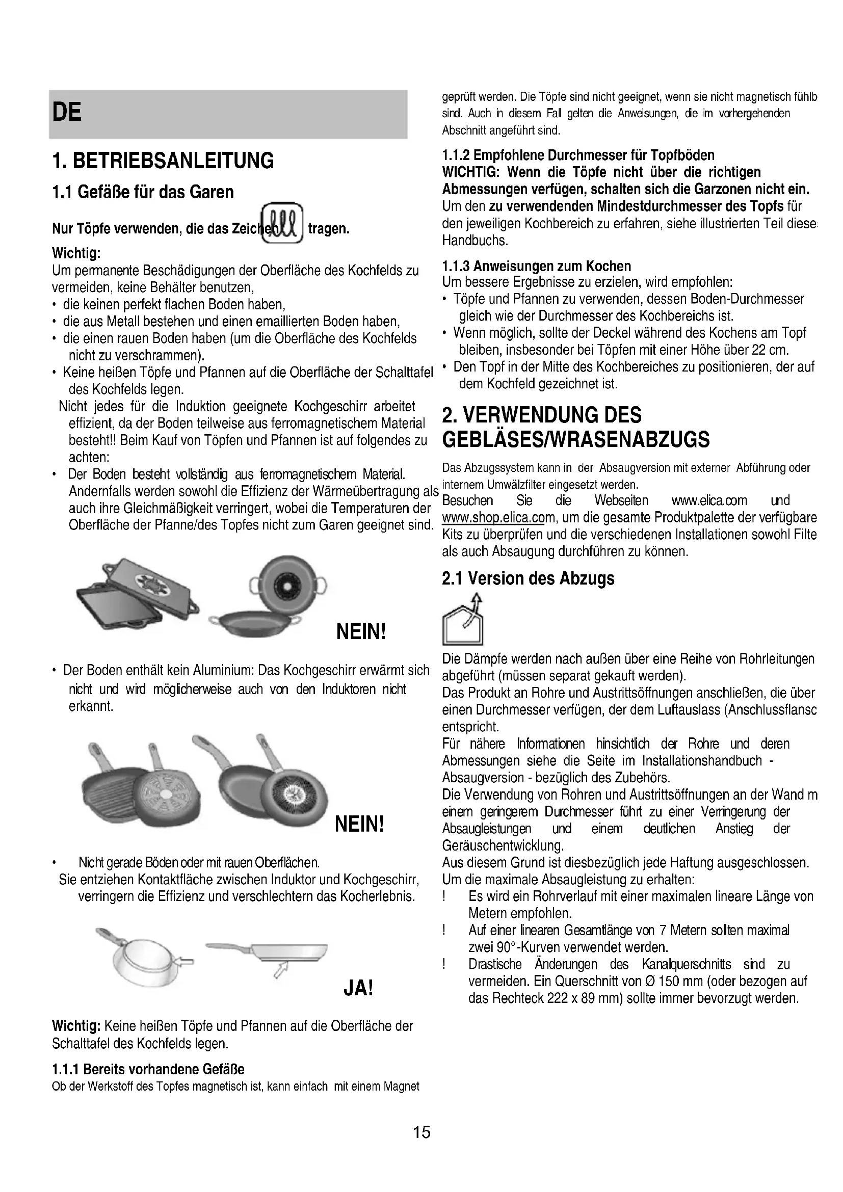 1.1.2 Empfohlene Durchmesser fur Topfböden