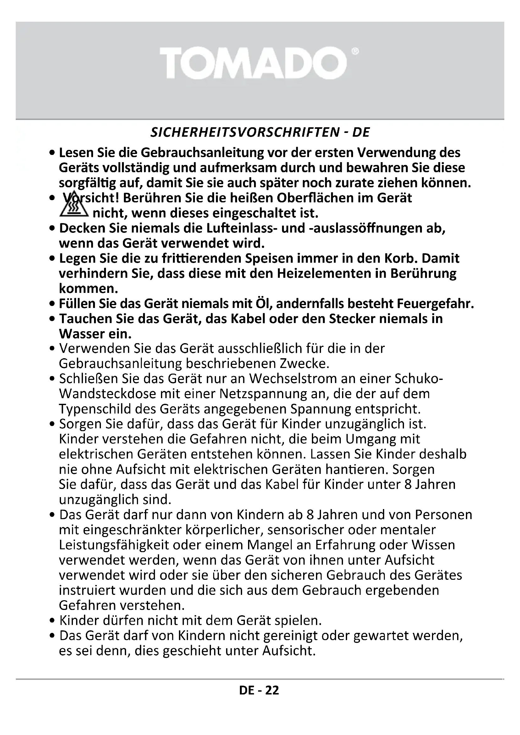 TAF5001B - Fritteuse Tomado - Kostenlose Bedienungsanleitung