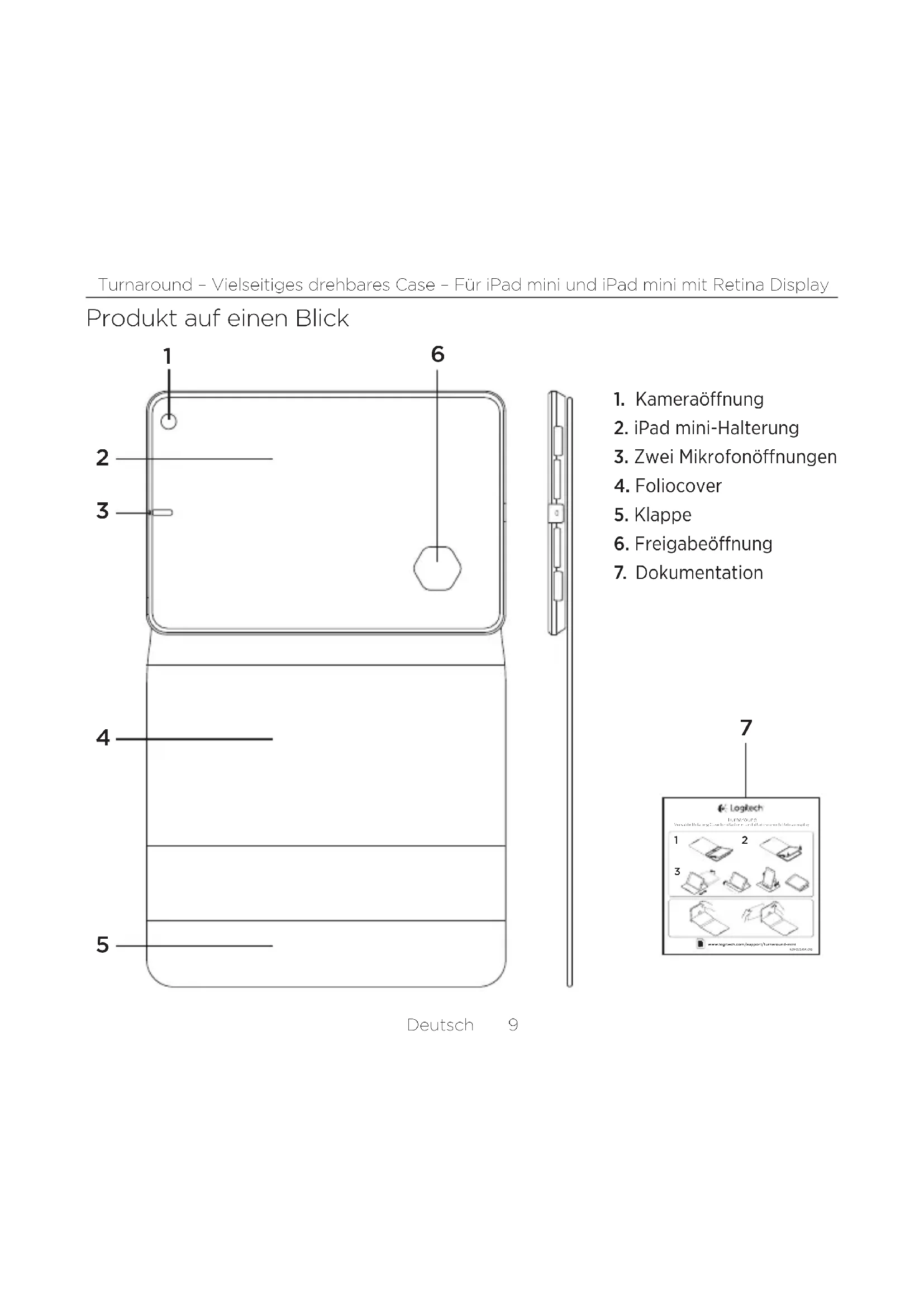 - Make sure your iPad mini is inserted in the iPad mini holder the right way round. What do you think? Please take a minute to tell us. Thank you for purchasing our product. www.logitech.com/ithinkDeutsch 9 Turnaround – Vielseitiges drehbares Case – Für iPad mini und iPad mini mit Retina Display Produkt auf einen Blick