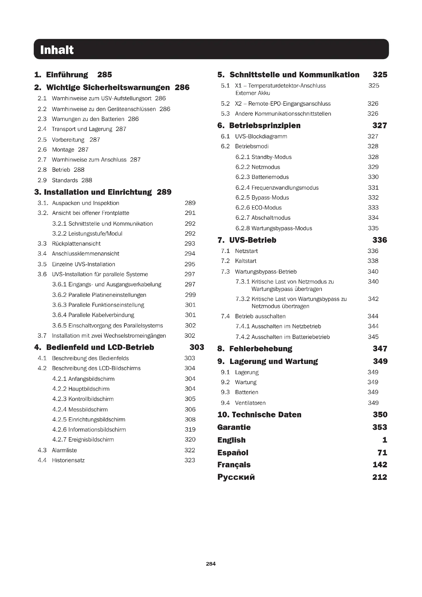 2.1 Warnhinweise zum USV-Aufstellungsort 286