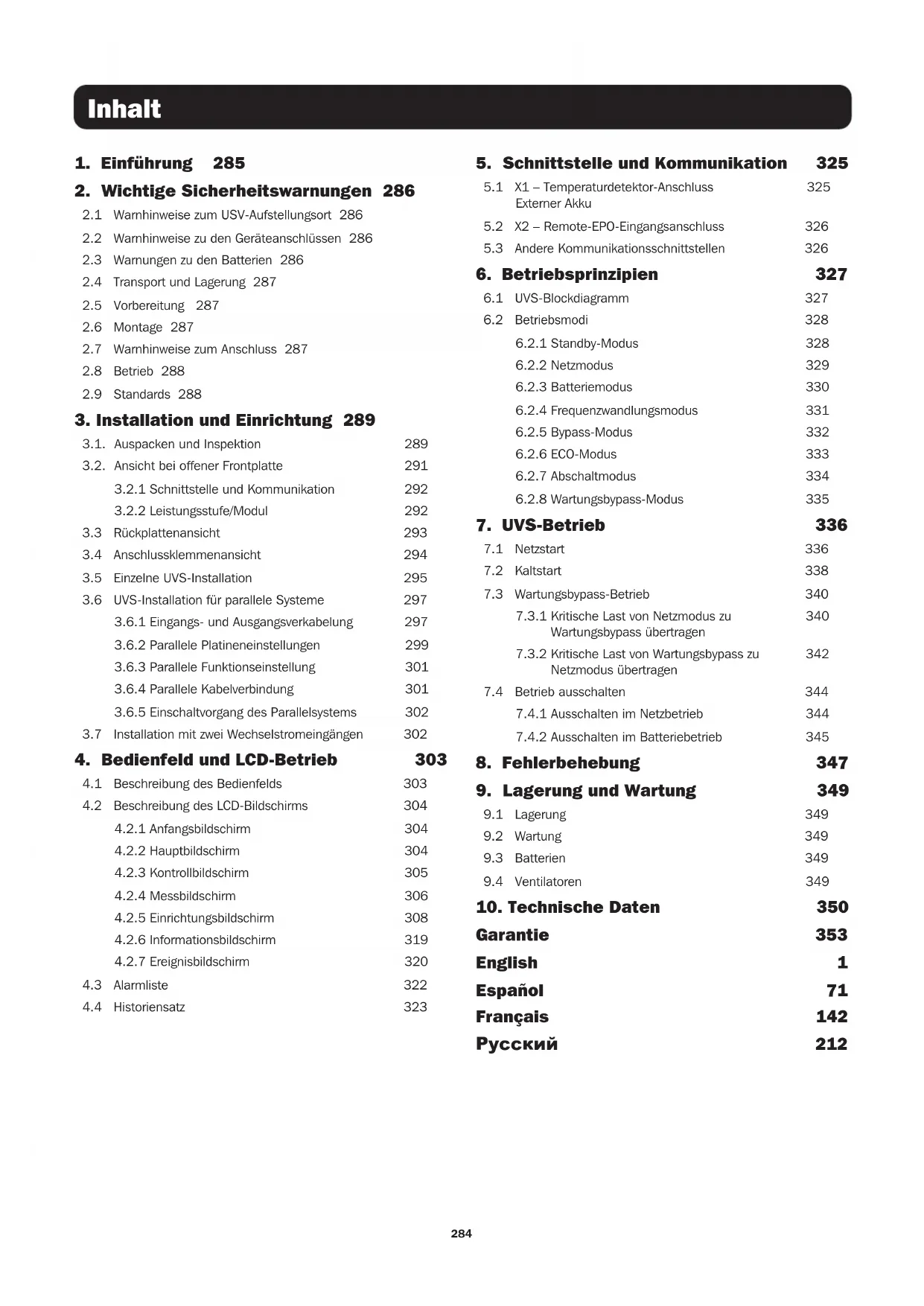2.1 Warnhinweise zum USV-Aufstellungsort 286