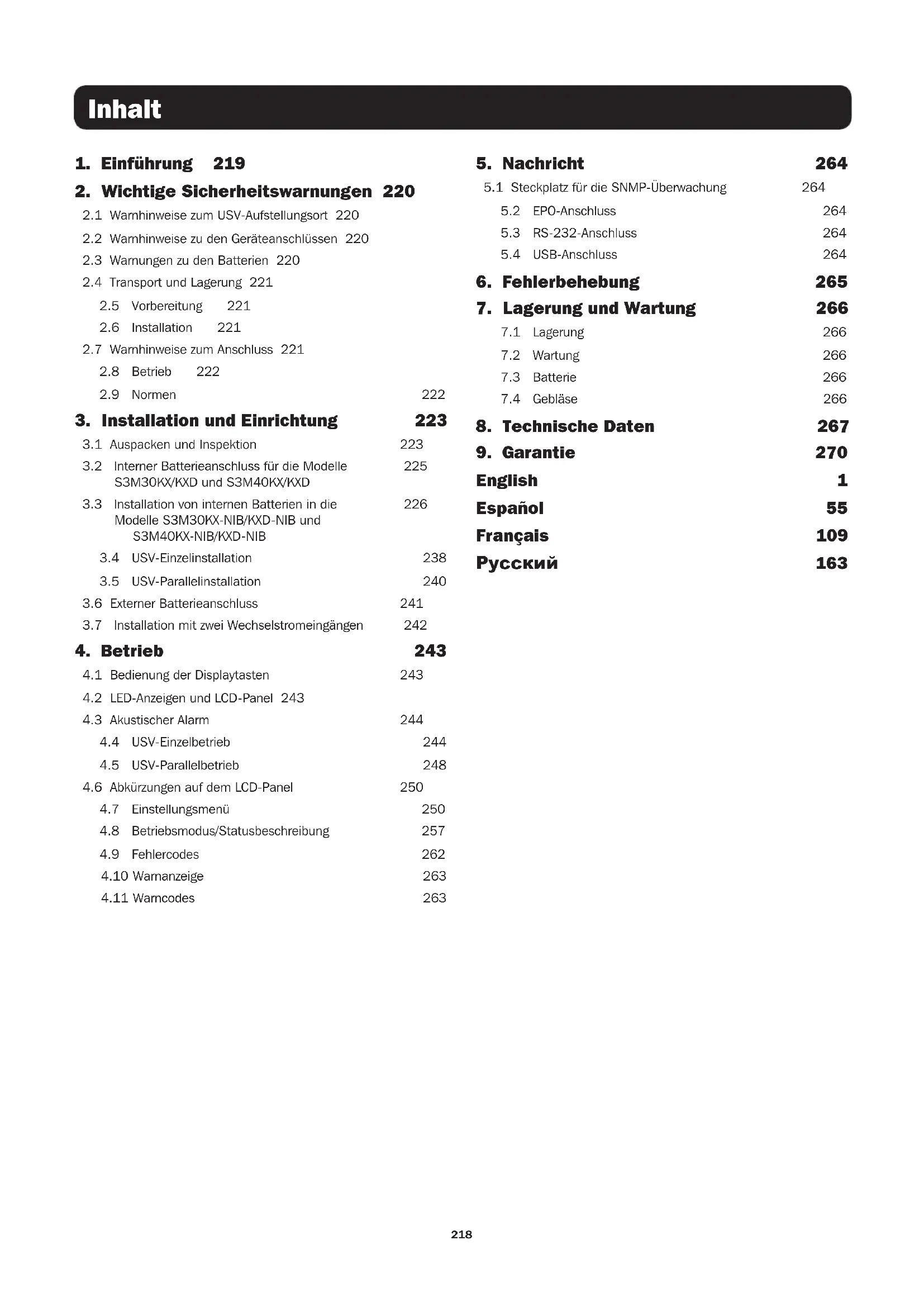 Dieses Handbuch enthalt wichtige Anweisungen und Warnungen, die bei Installation und Wartung aller Tripp Lite SmartOnline S3MX 3-Phasen 30 kVA, 40 kVA, 60 kVA und 80 kVA UPS-Systeme und ihrer Batterien beachtet werden sollenten. Die Nichtbeachtung dieser Warnungen kann ihre Garantie beeinträchtigen.