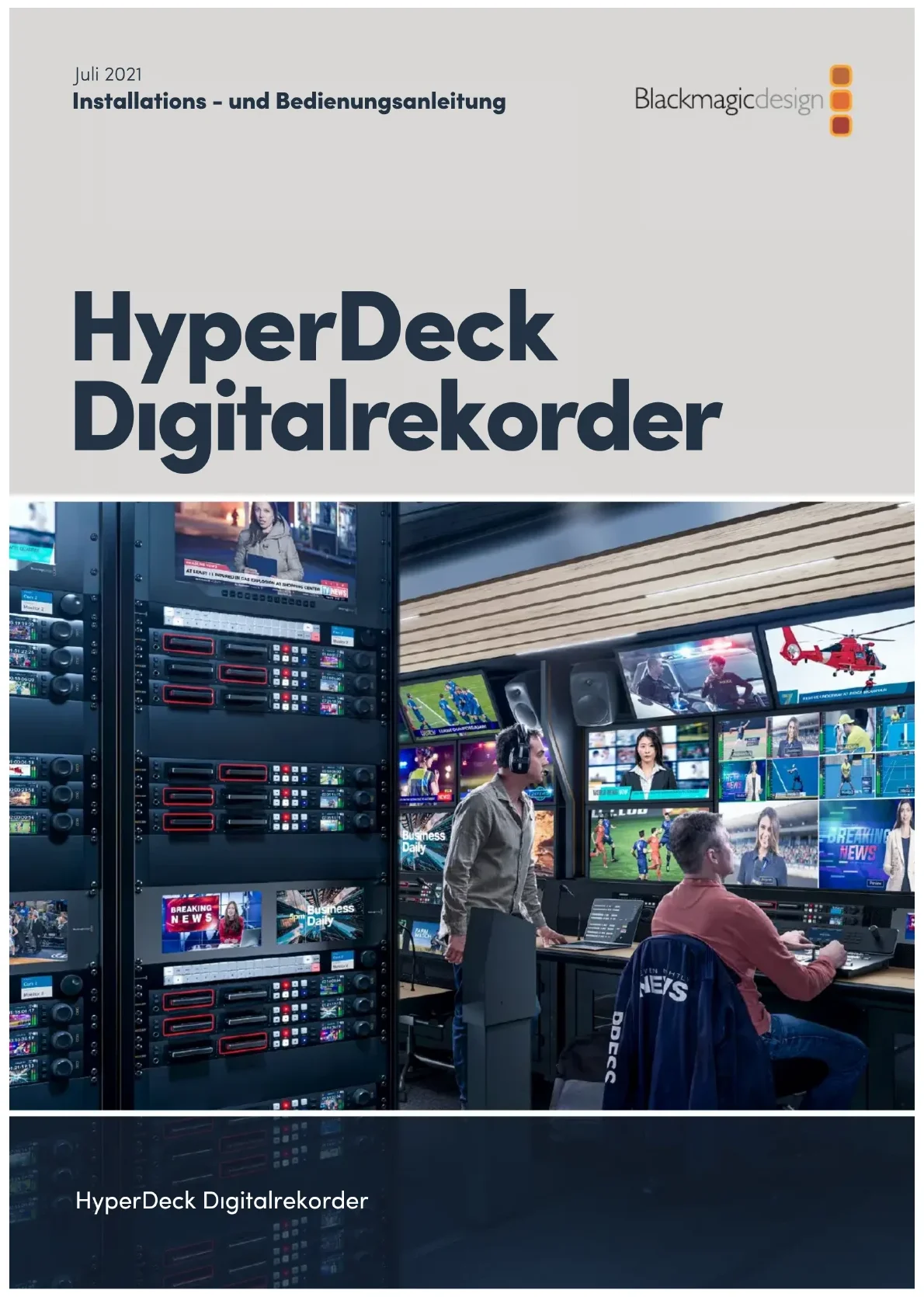 Laden Sie die Anleitung für Ihr Videorekorder kostenlos im PDF-Format! Finden Sie Ihr Handbuch HyperDeck Studio HD Pro - Blackmagic Design und nehmen Sie Ihr elektronisches Gerät wieder in die Hand. Auf dieser Seite sind alle Dokumente veröffentlicht, die für die Verwendung Ihres Geräts notwendig sind. HyperDeck Studio HD Pro von der Marke Blackmagic Design.