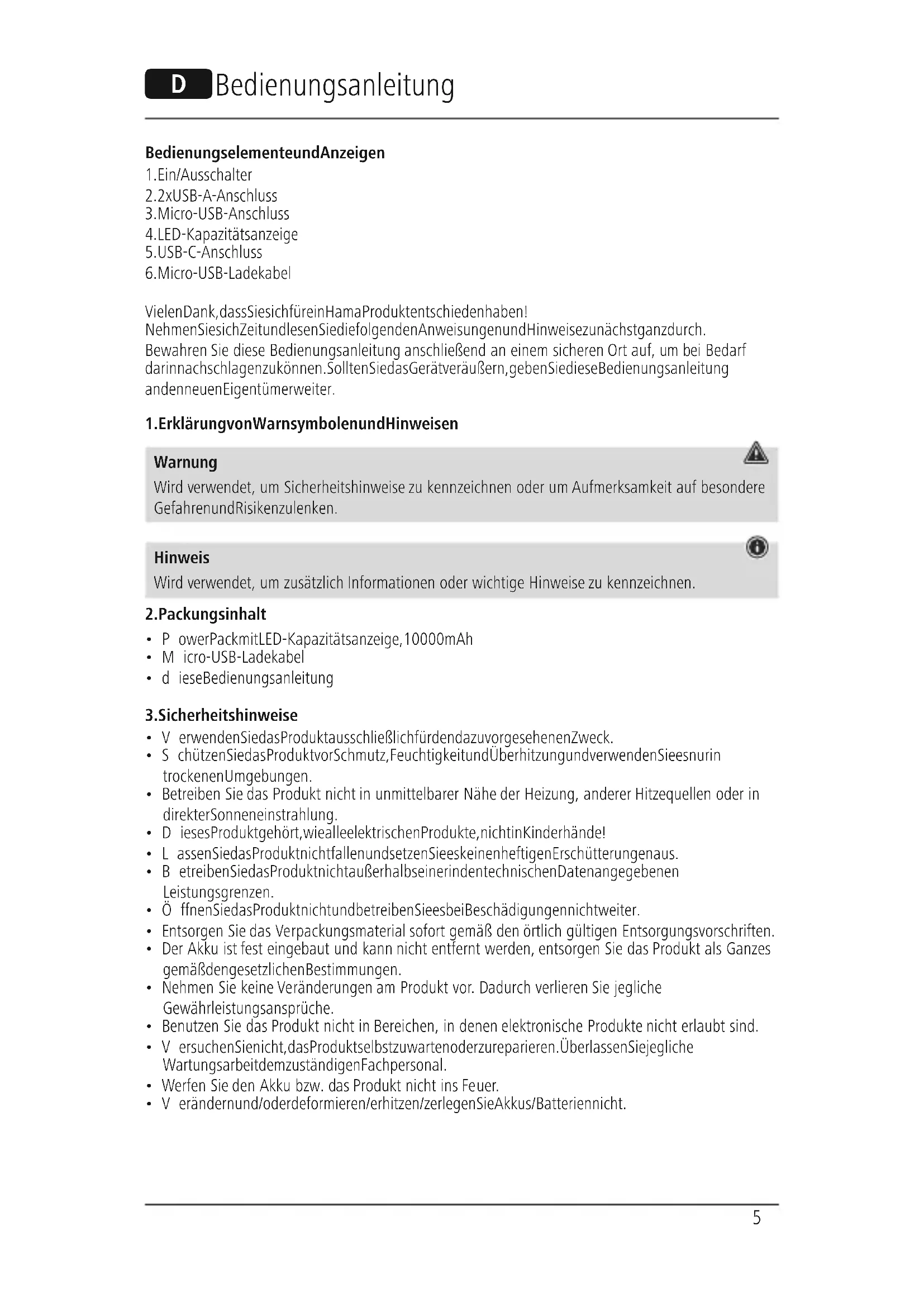 LED10S - Tragbarer Akku HAMA - Kostenlose Bedienungsanleitung
