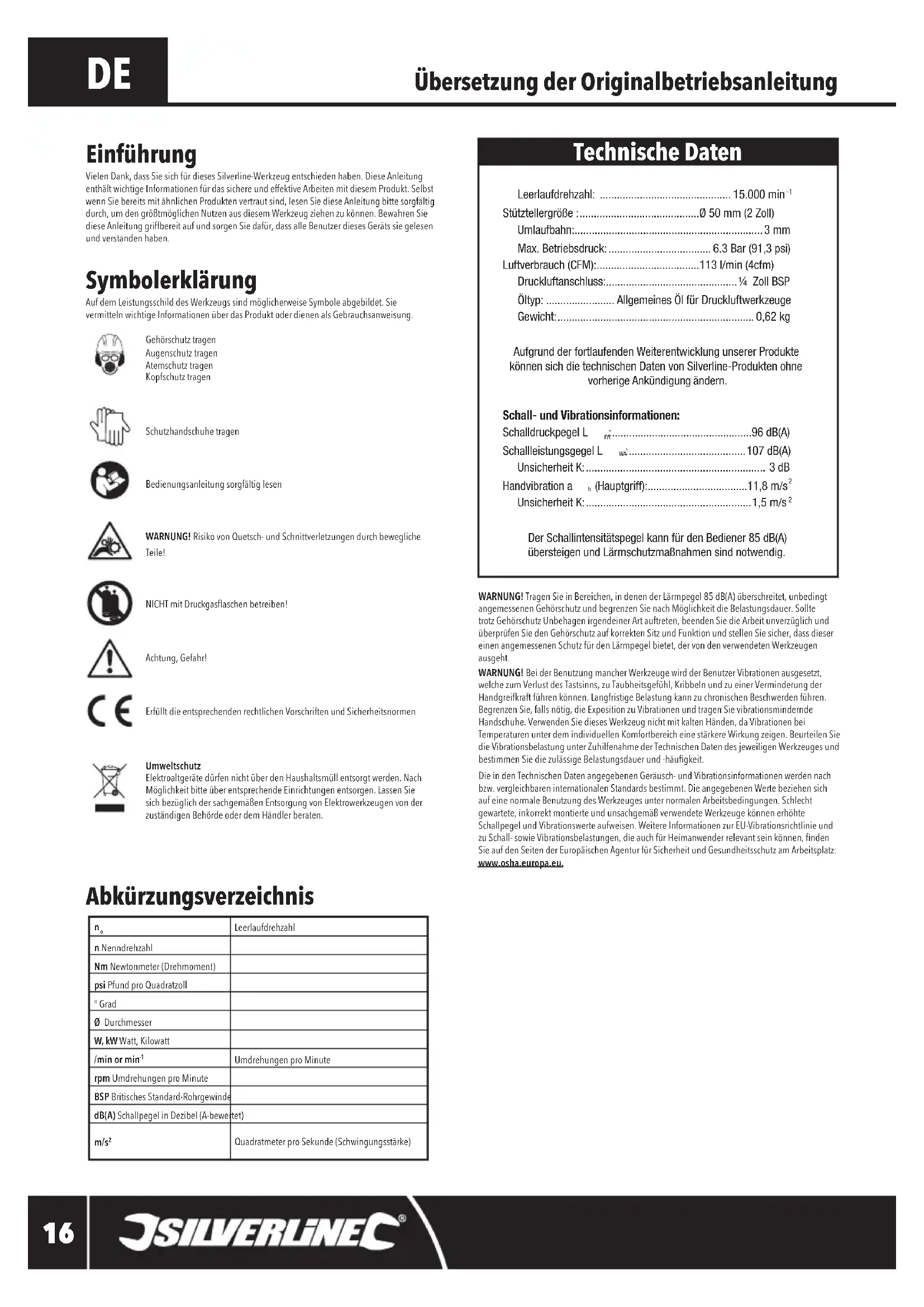Vielen Dank, dass Sie sich für diesen Silverline-Werkzeug entschieden haben. Diese Anleitung enthalt wichtige Informationen für das sichere und effektive Arbeits mit diesen Produkt. Selfbst wenn Sie bereits mit ähnlichen Produkten vertraut sind, lessen Sie diese Anleitungitte sorfältig durch, um den großmöglichen Nutzen aus diesen Werkzeugziehen zu konnen. Bewahren Sie diese Anleitung griffbereit auf und sorgen Sie dazu, dass alle Benutzer deses Gerats sie gelesen und verstanden haben.