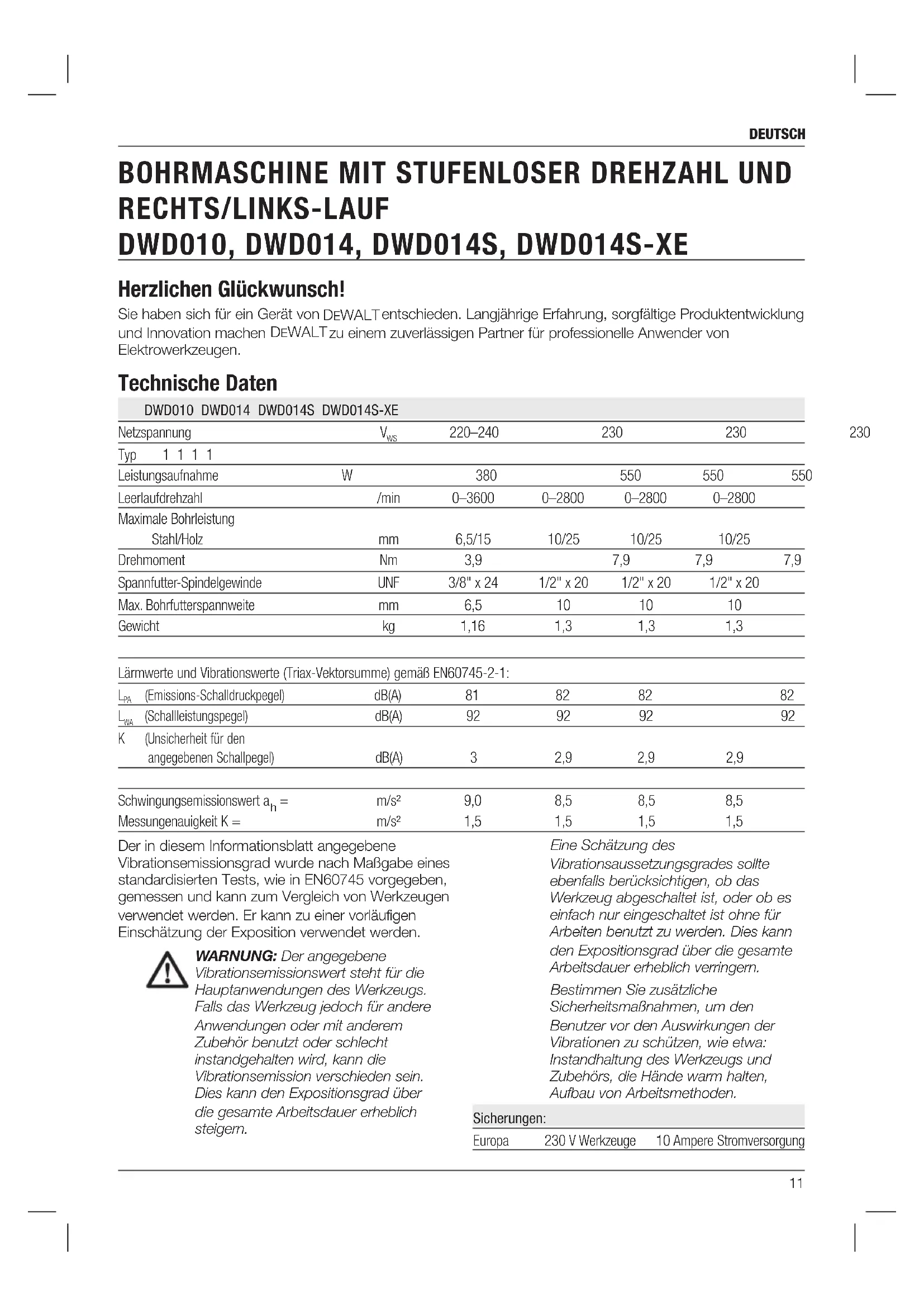 DWD014S - Bohrmaschine DEWALT - Kostenlose Bedienungsanleitung