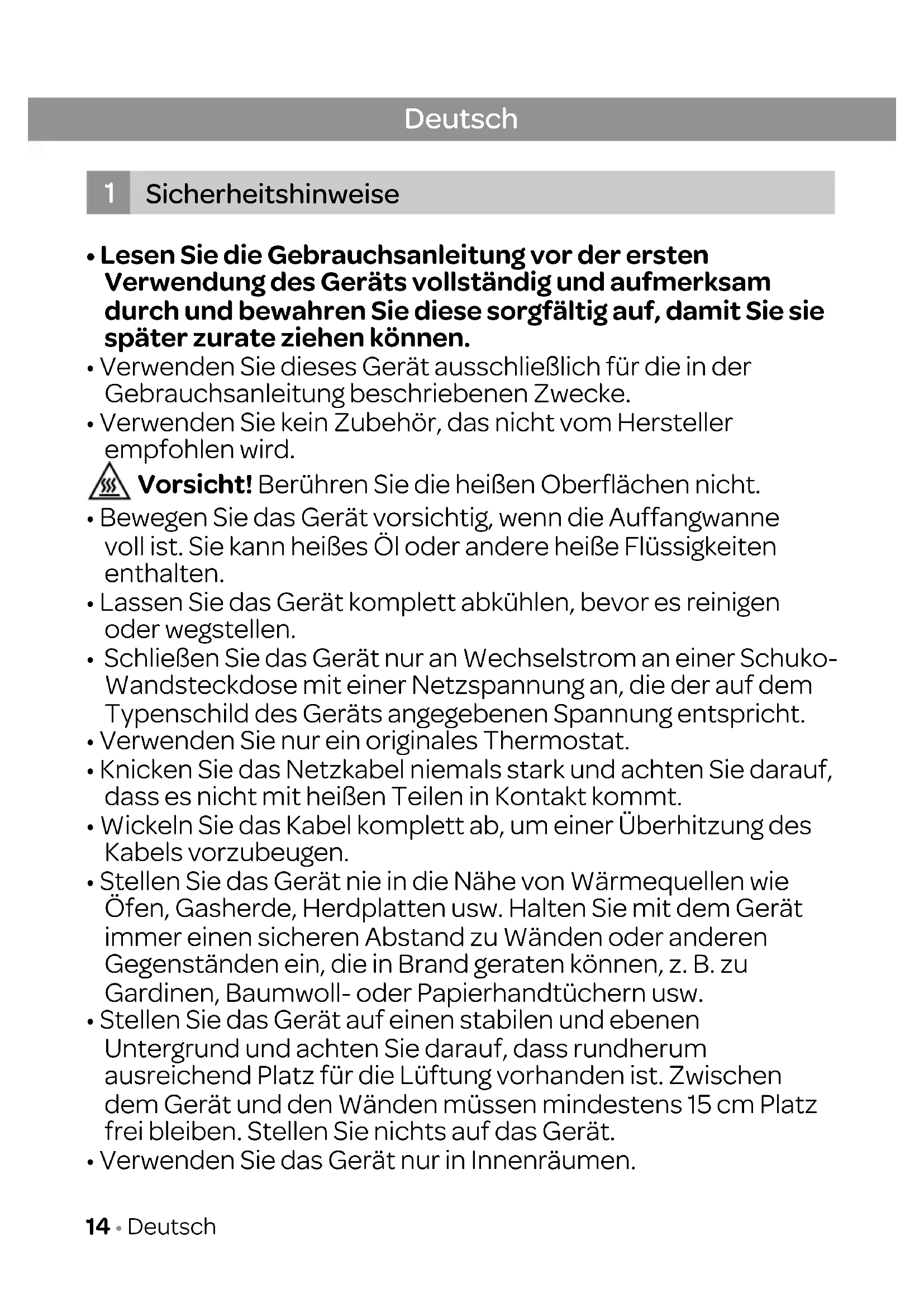 14 • Deutsch• Lassen Sie ein eingeschaltetes Gerät niemals unbeaufsichtigt stehen.