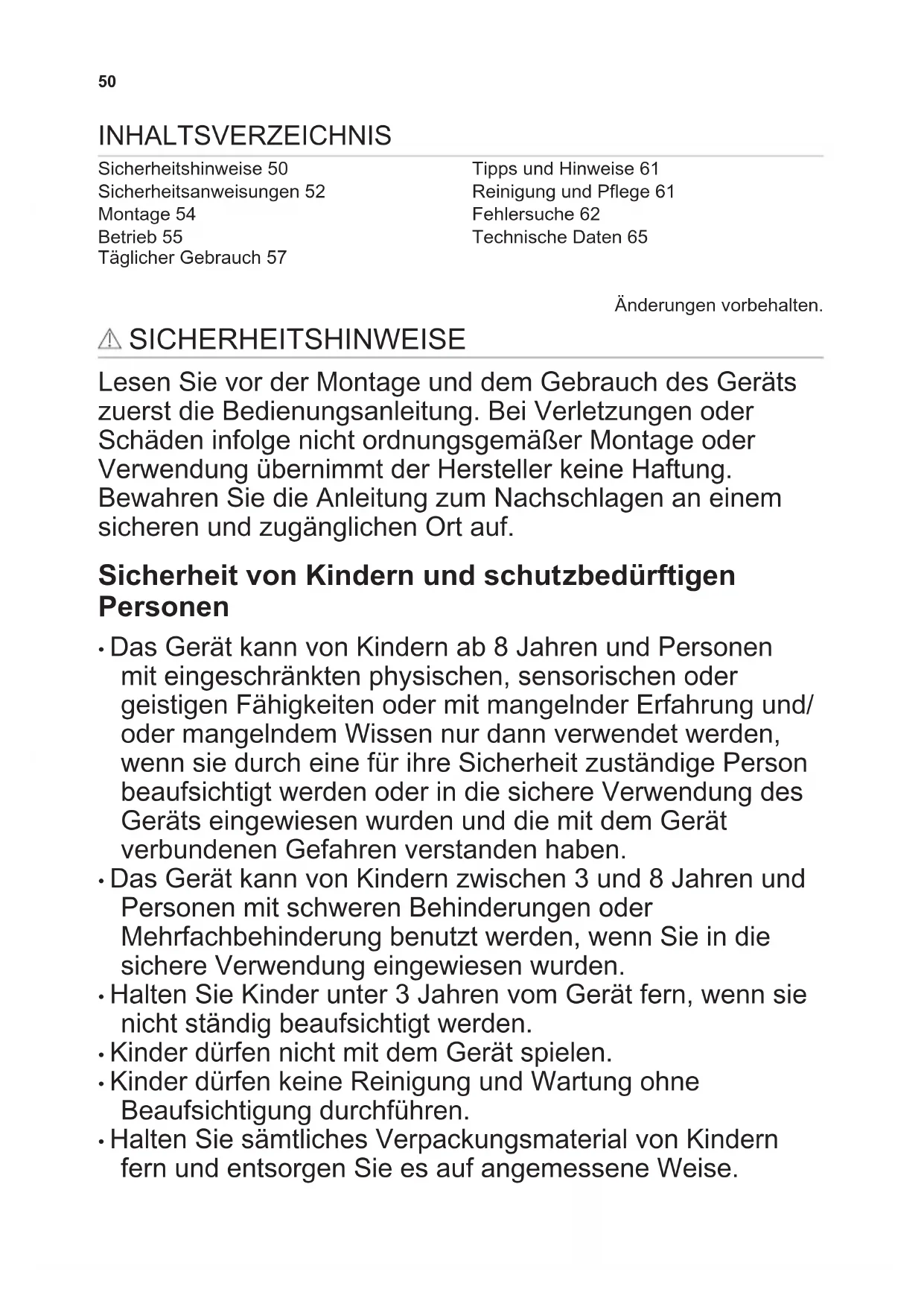 - Das Gerät kann von Kindern zwischen 3 und 8 Jahren und Personen mit schweren Behinderungen oder Mehrfachbehinderung benutzt werden, wenn Sie in die sichere Verwendung eingewiesen wurden.