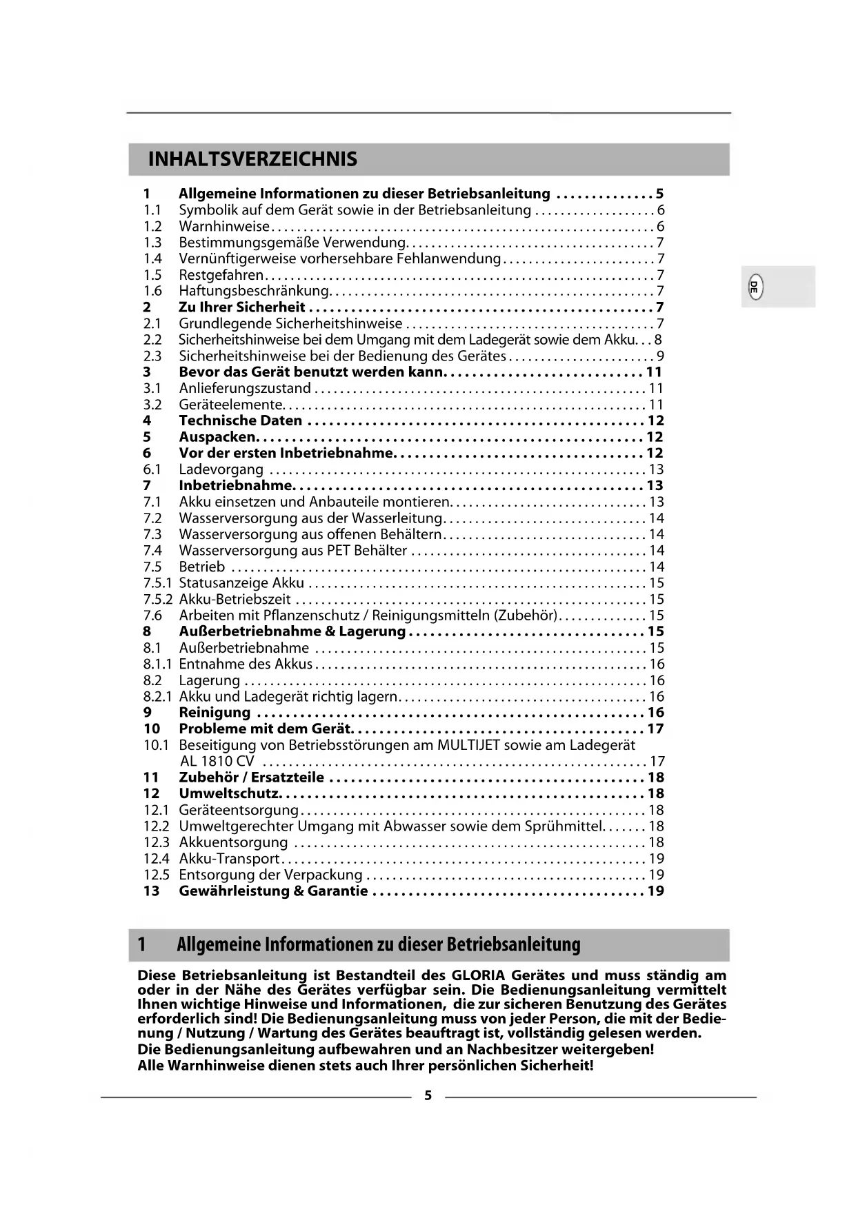 Finden Sie kostenlos die Bedienungsanleitung des Geräts MultiJet 18V GLORIA als PDF.