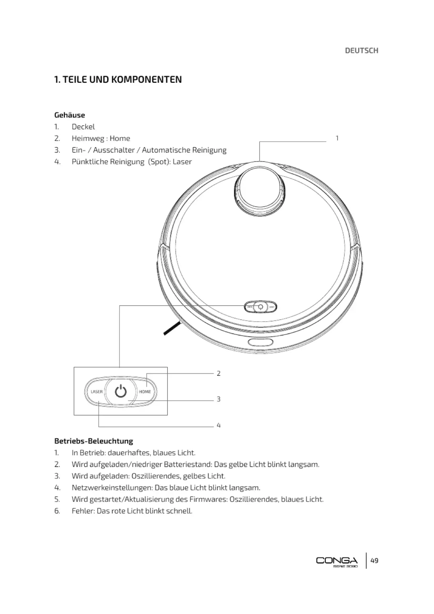 Produktreferenz : Conga Serie 3090 Spannung und Frequenz: 05148/05149/05150 100-240 V, 50/60 Hz Akku: 14.8 V, 3200 mAh Hergestellt in China I Entworfen in SpanienDEUTSCH