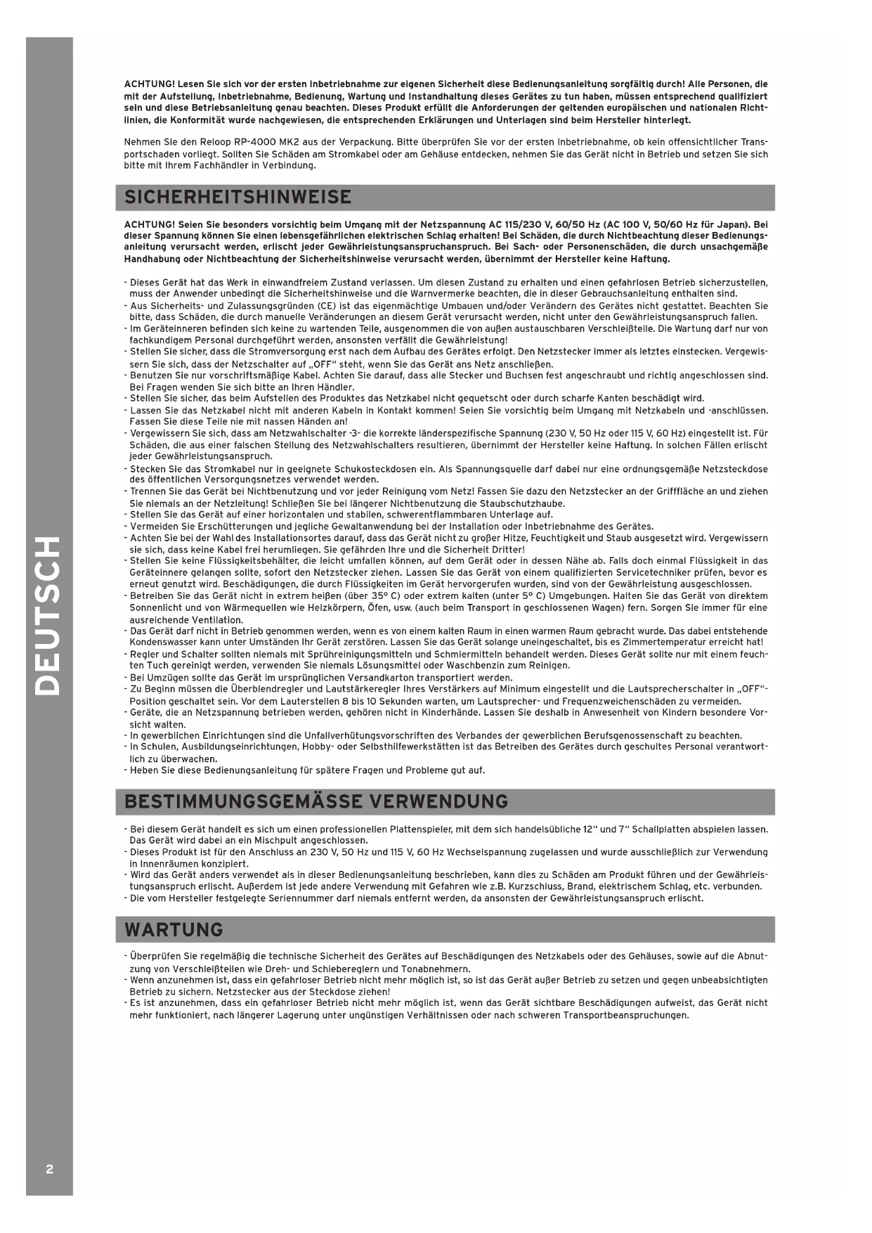 BEDIENUNGSANLEITUNG RP4000 MK2 Reloop