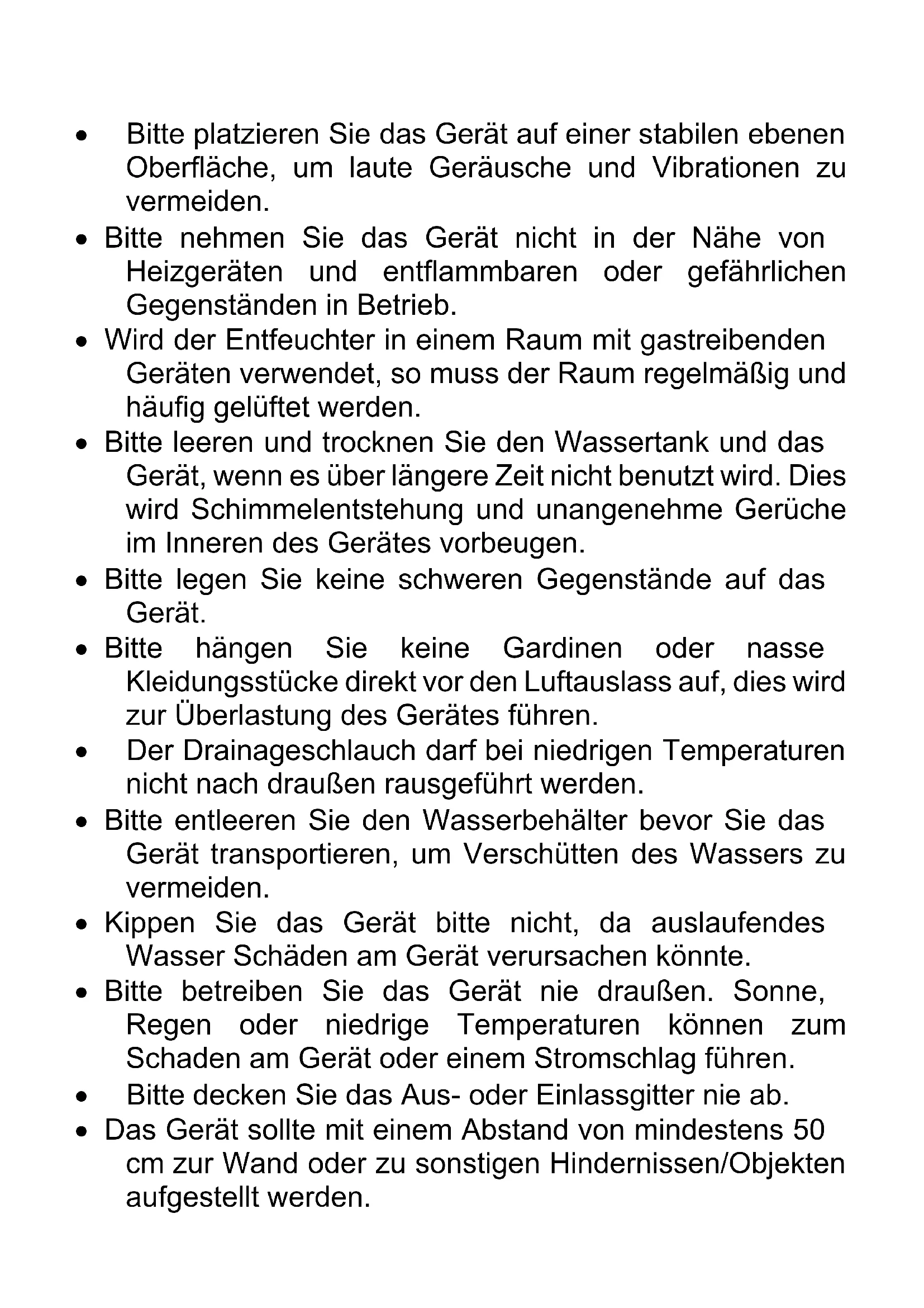 8• Bitte platzieren Sie das Gerät auf einer stabilen ebenen Oberfläche, um laute Geräusche und Vibrationen zu vermeiden.