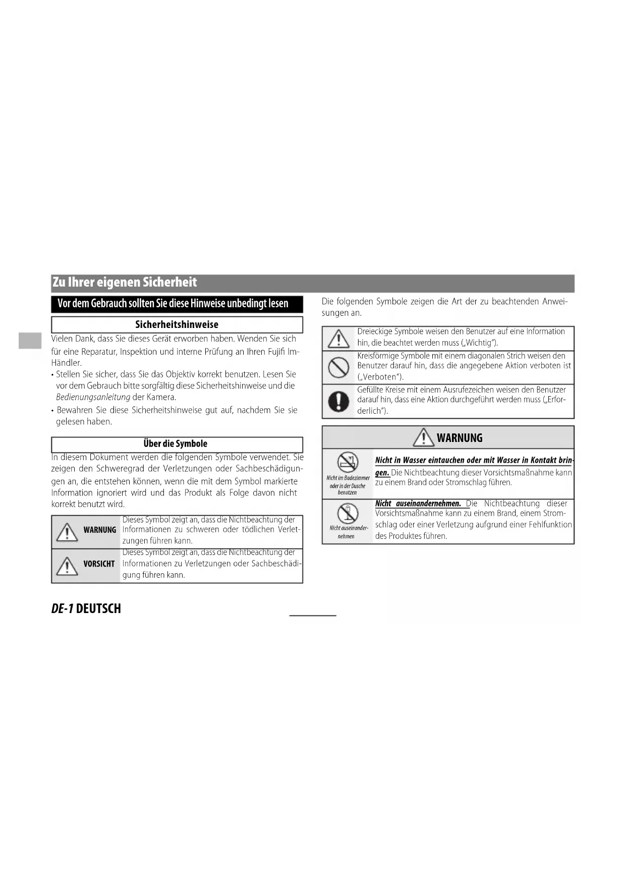 - Stellen Sie sichere, dass Sie das Objektiv korrekt benutzen. Lesen Sie vor dem Gebrauchitte sorgfältig diese Sicherheitshinweise und die Bedienungsanleitung der Kamera.