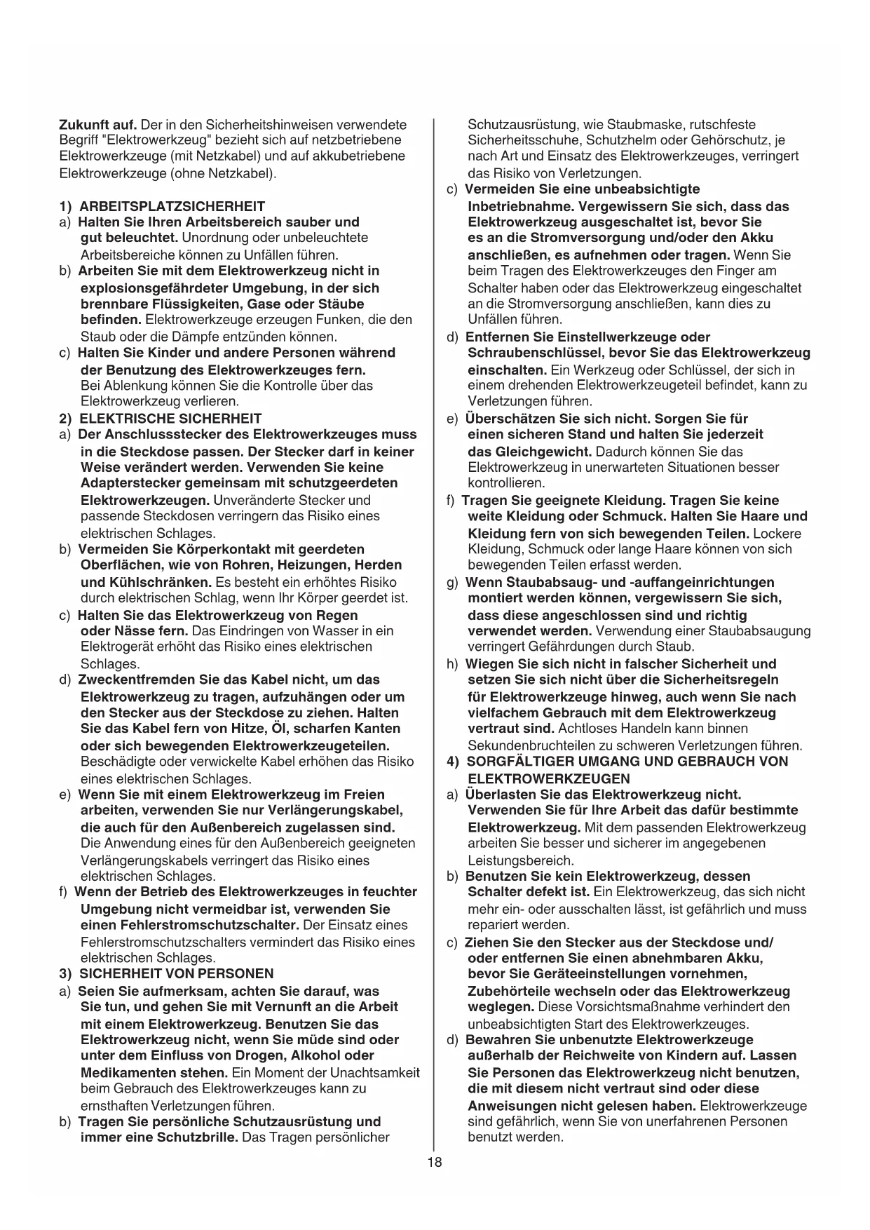 a) Seien Sie aufmerksam, achten Sie darauf, was Sie tun, und gehen Sie mit Vernunft an die Arbeit mit einem Elektrowerkzeug. Benutzen Sie das Elektrowerkzeug nicht, wenn Sie müde sind oder unter dem Einuss von Drogen, Alkohol oder Medikamenten stehen. Ein Moment der Unachtsamkeit beim Gebrauch des Elektrowerkzeuges kann zu ernsthaften Verletzungen führen. b) Tragen Sie persönliche Schutzausrüstung und immer eine Schutzbrille. Das Tragen persönlicher19